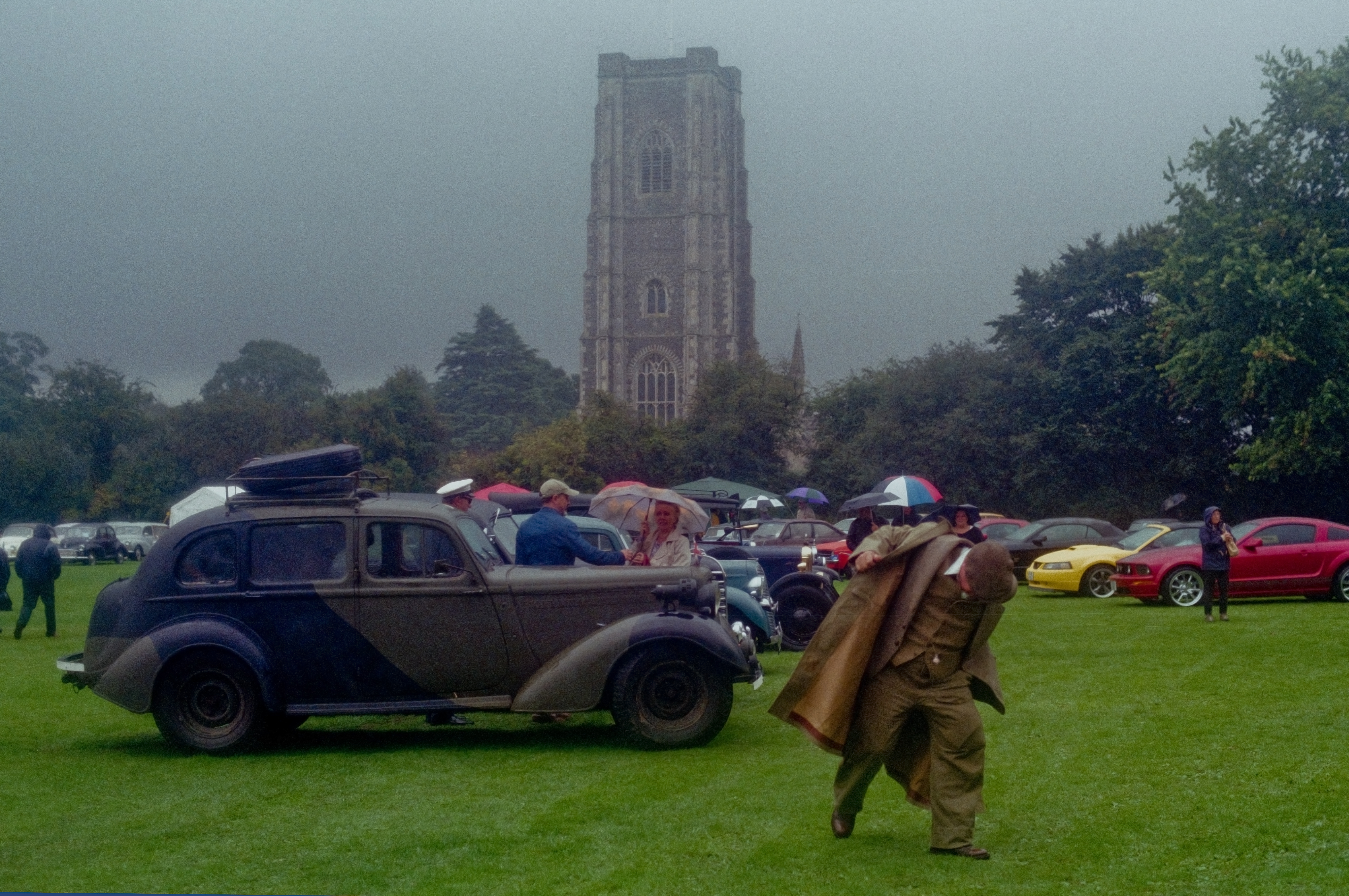 © Si Barber 07739 472 922 Lavenham carnival parade on a rainy bank holiday Monday, 2015.