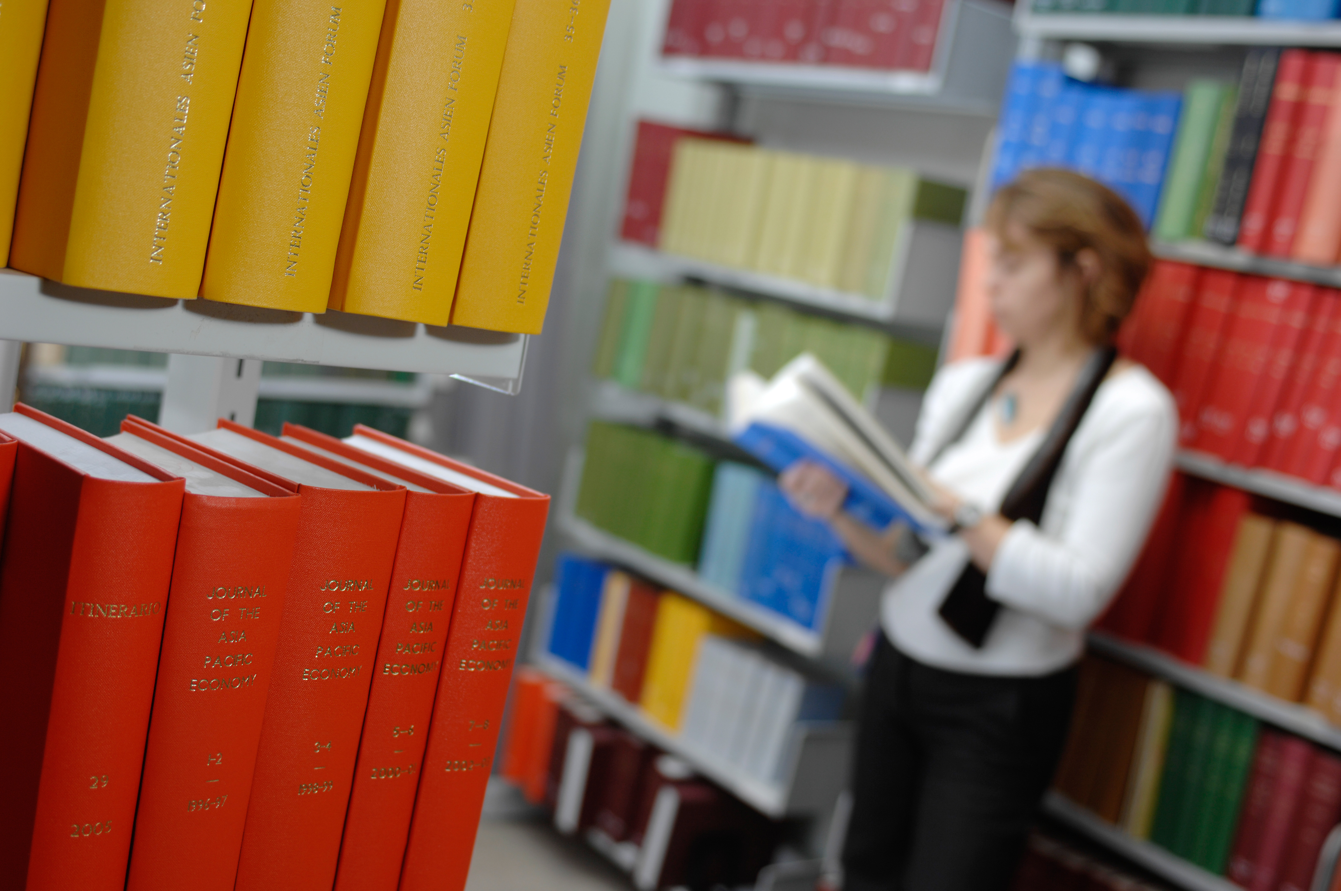 Mandatory Credit: ? Si Barber/07739 472 922 Woman looking at books at a Cambridge University library.
