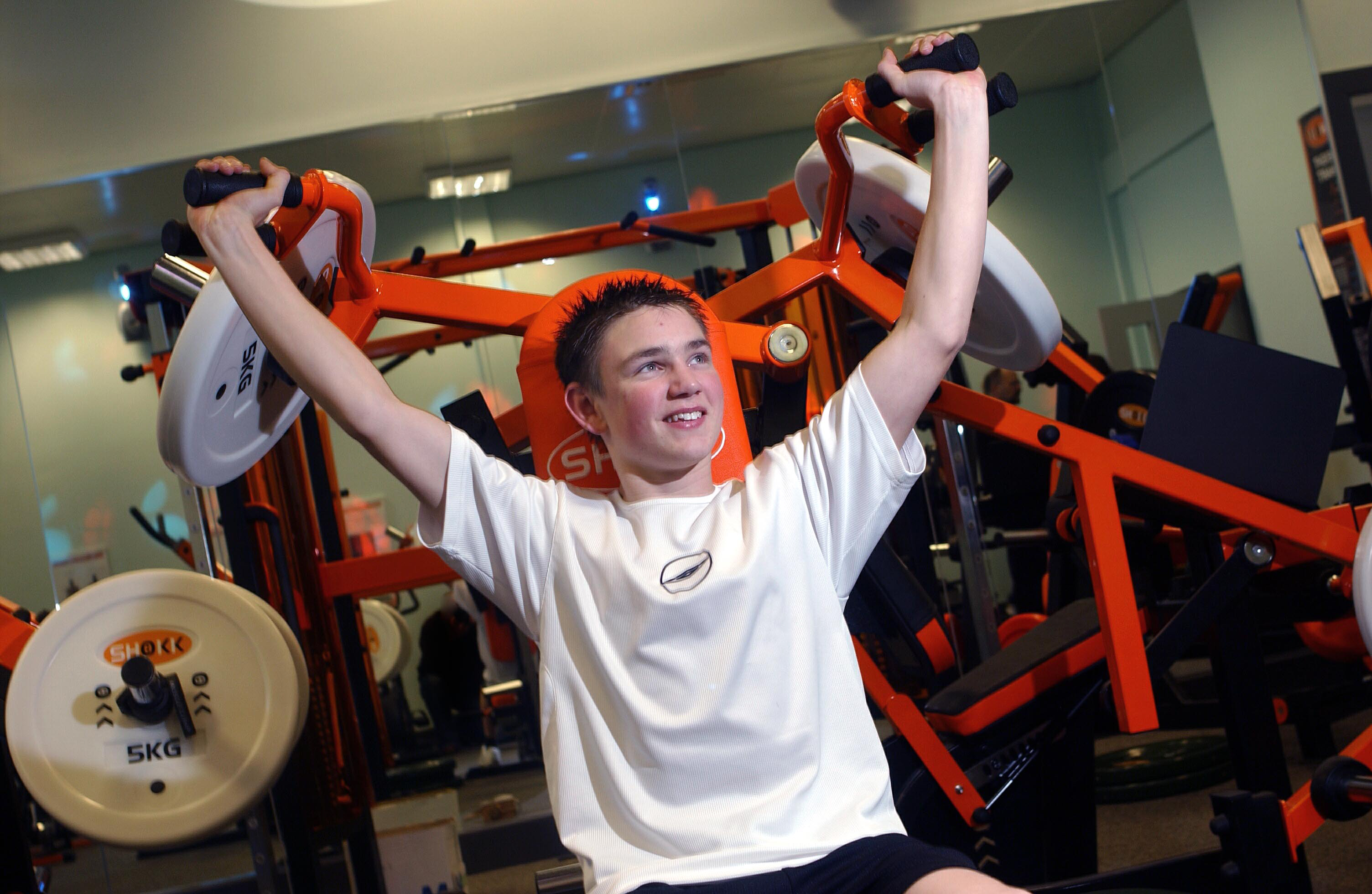 Pic by Si Barber - 07739 472 922 Sixth Form student Jack trying out the new gym at Arthur Mellows School, Glinton, Peterborough 18.11.05