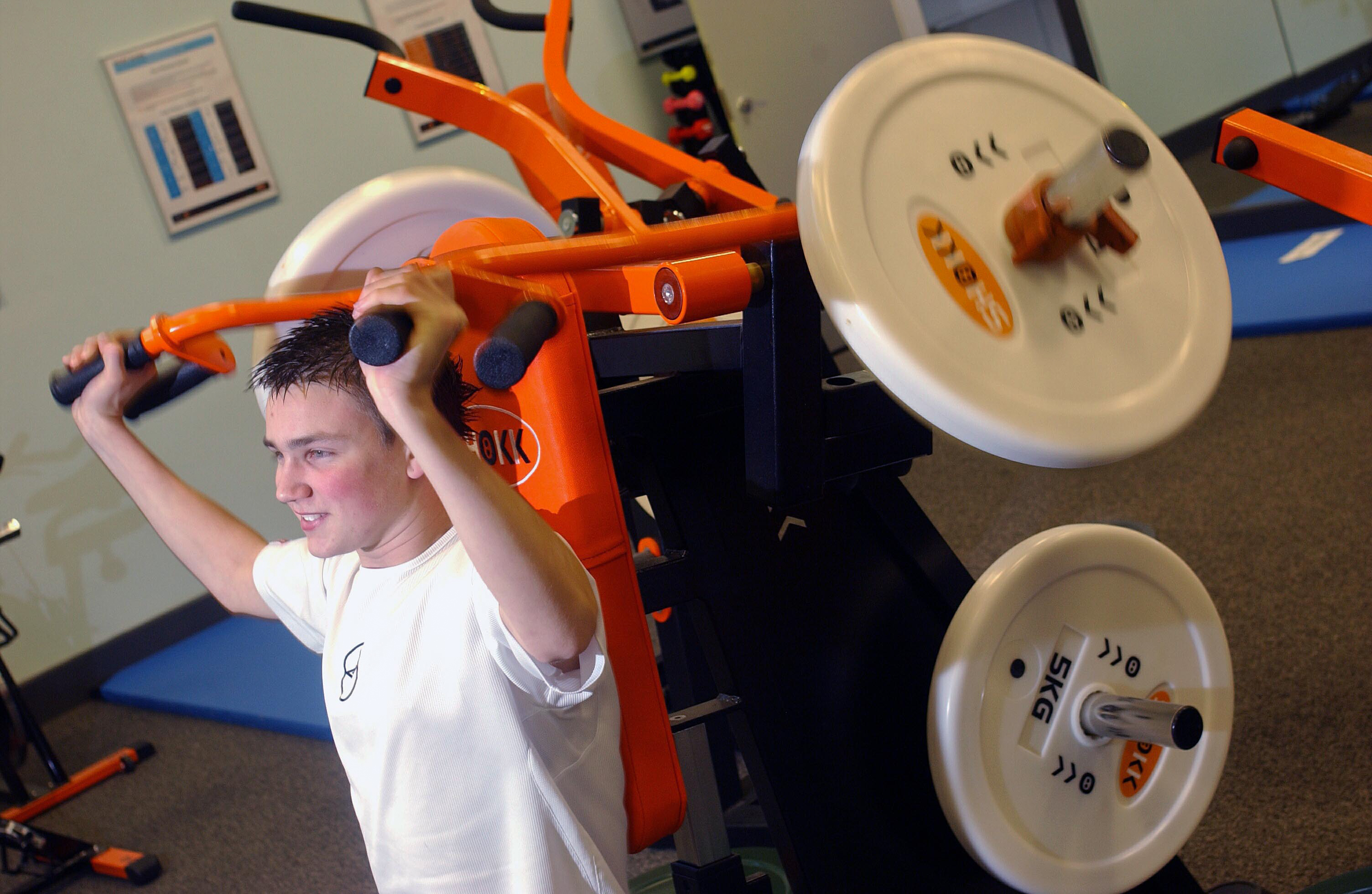 Pic by Si Barber - 07739 472 922 Sixth Form student Jack trying out the new gym at Arthur Mellows School, Glinton, Peterborough 18.11.05