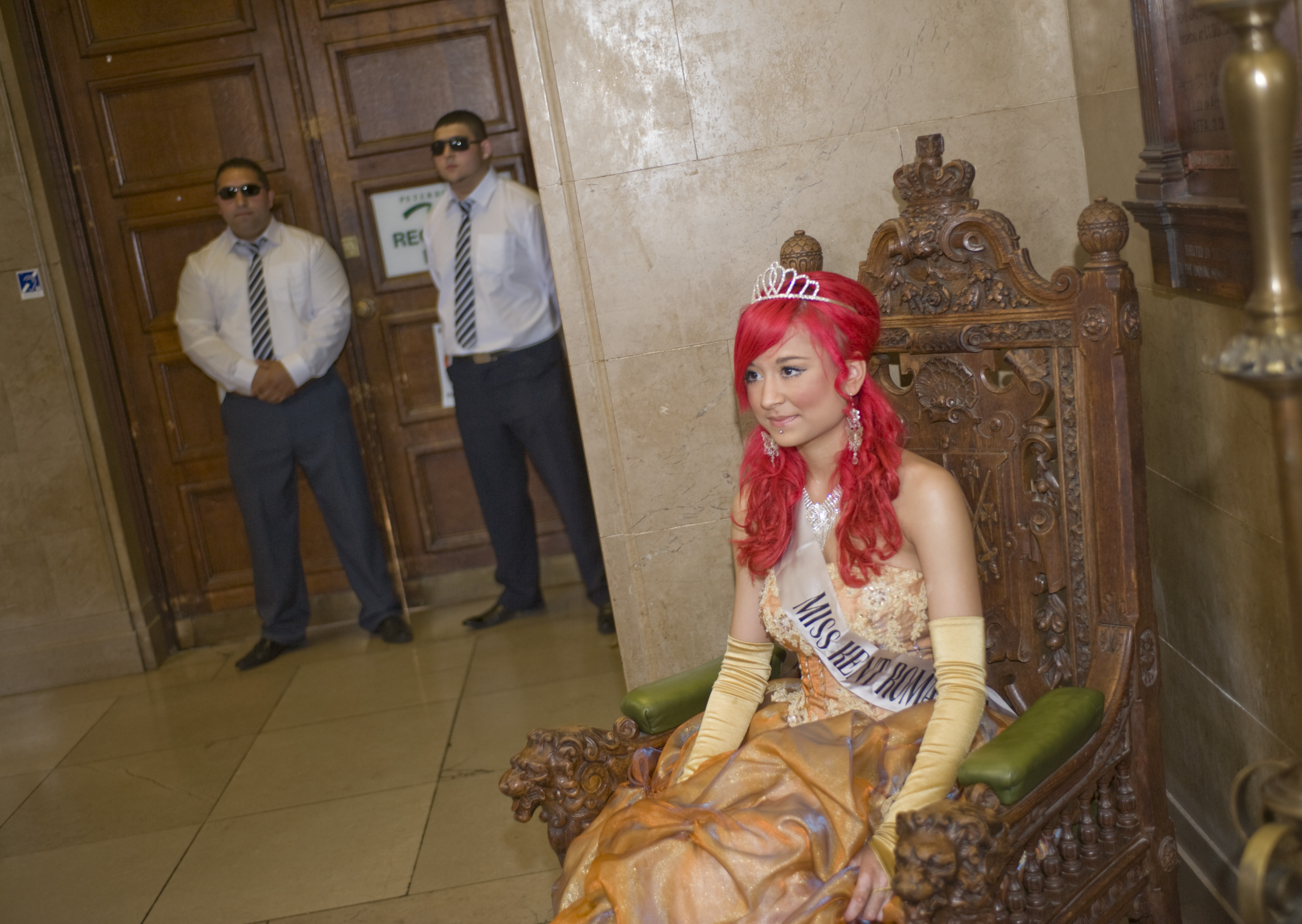 ?Si Barber2010 Tel 07739472922.Voting in the UK's first ever Roma Gypsy election gets under way in Peterborough, Cambridgeshire on Saturday 25th June 2011..Nineteen candidates from across Britain have been ?campaigning ?for the title of 'King of the Gypsies, which in past years was decided with a fist-fight but today the winner will be nominated by the ballot box. ?The victor will be awarded a crown and a 'gold' stick which will empower them to adjudicate on disputes within the community. In this picture?Miss Kent Roma 2011, Martina Kalinova waits toaward the crown to the Gypsy KIng..