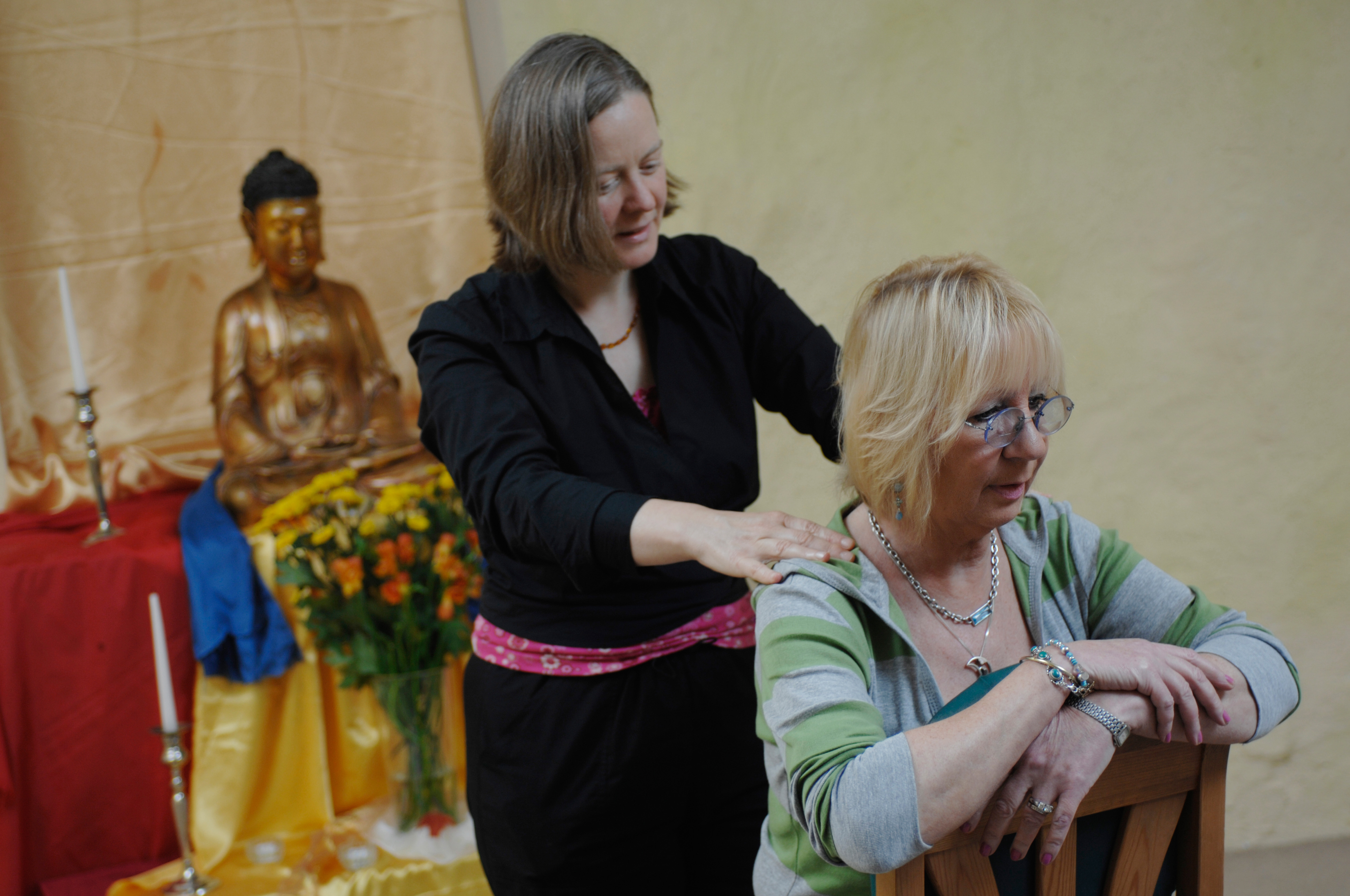 Mandatory Credit: © Si Barber/07739 472 922 Woman receiving hand & head massage.