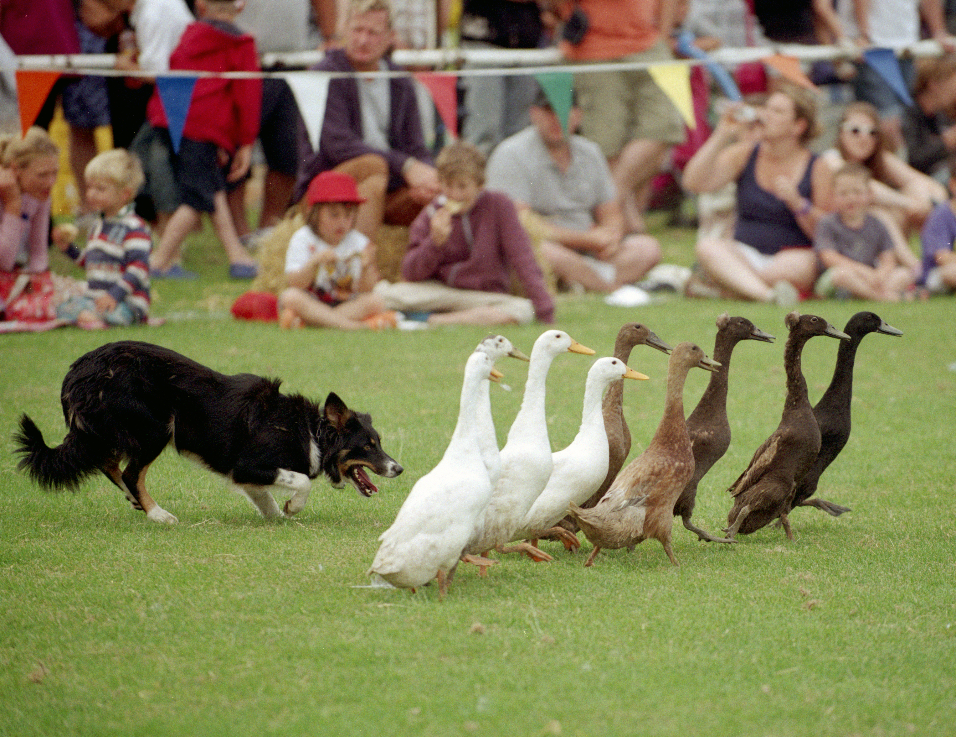 ? Si Barber 07739 472 922 A dog herding ducks at Wells Carnival, Norfolk,UK, 2013.