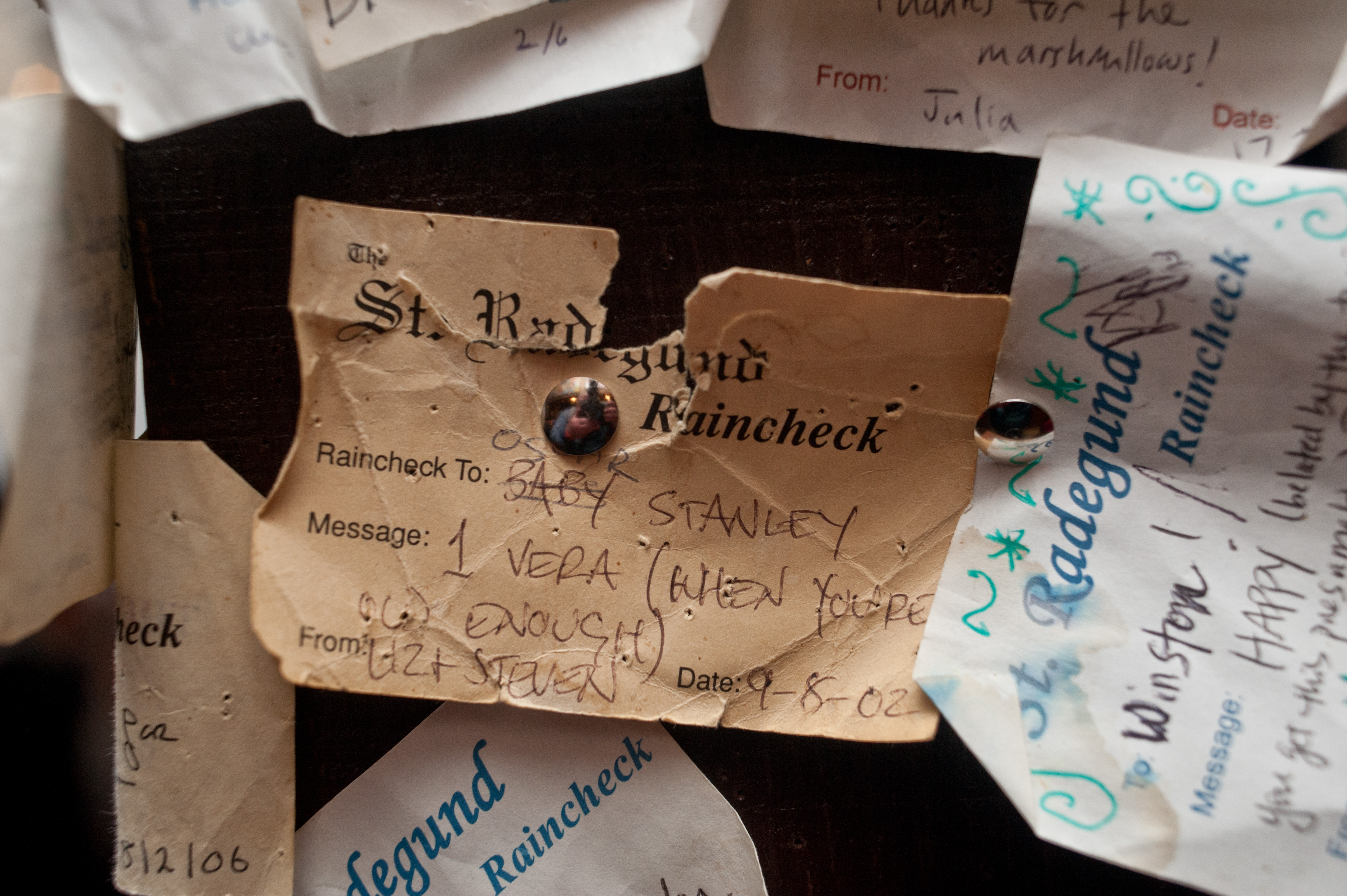 Pub crawling at the St Radegund in Cambridge with Sebastian Kempkens. Image shows Radegund Rainchecks - promises of a pint left for absent friends.