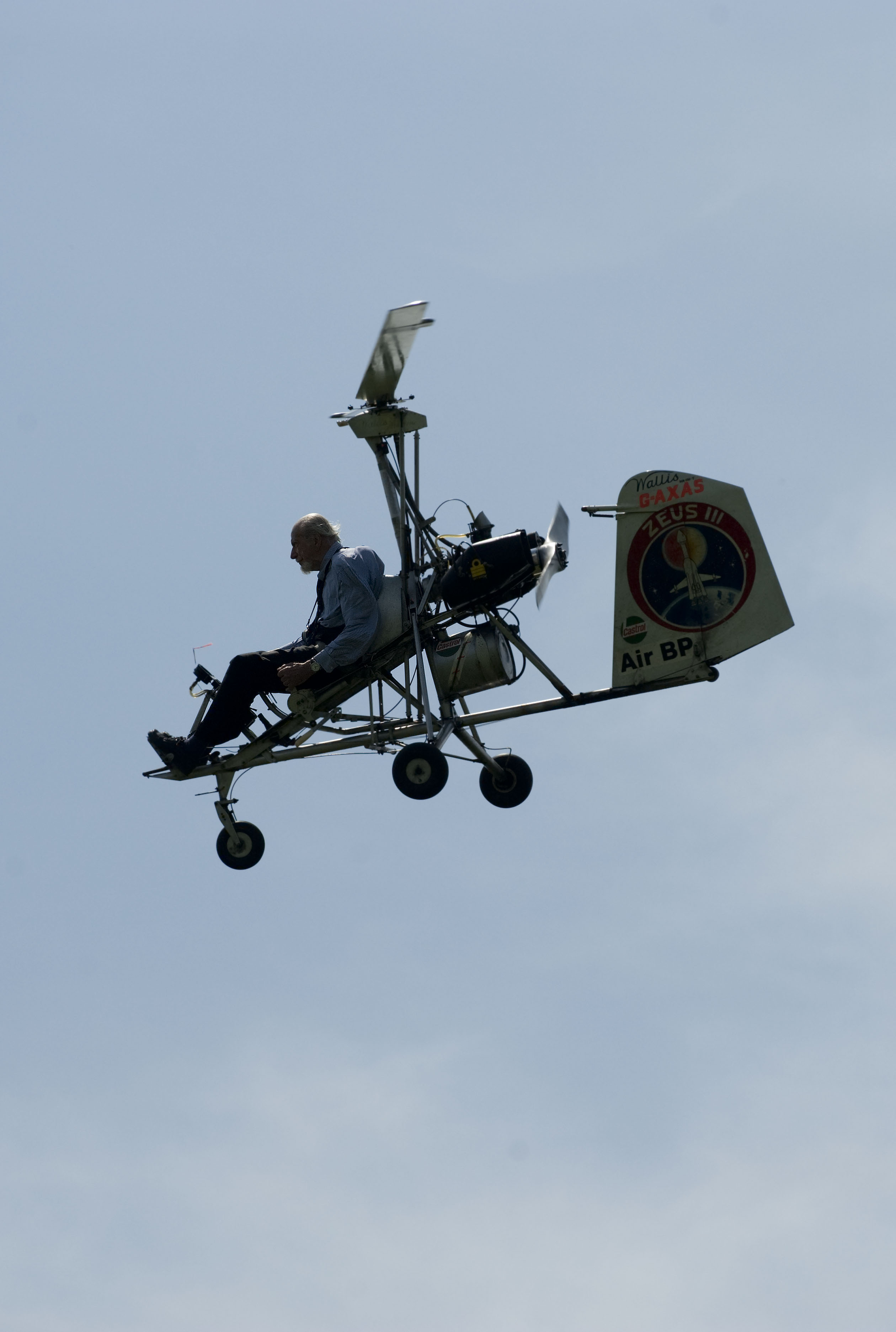 Wing Commander Ken Wallis MBE. The 94 year old former bomber pilot is attempting to break the autogyro speed record by reaching 140mph in his hand-built aircraft. 23062010
