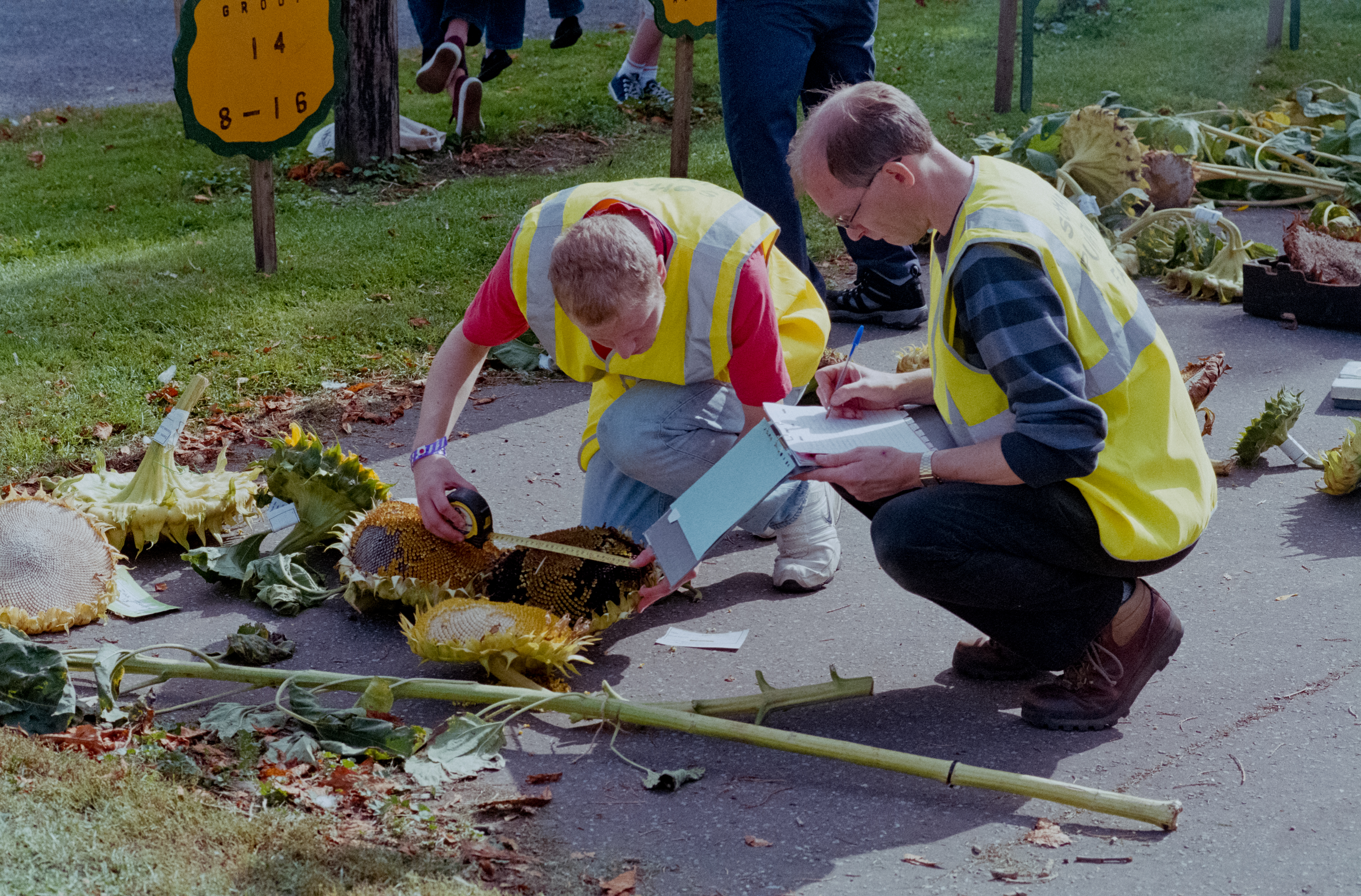 Mandatory Credit: ? Si Barber/07739 472 922 Judges measuring garden produce at a village show