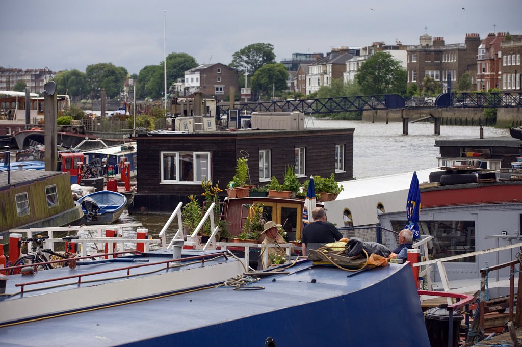 ? Si Barber 07739 472 922 Residents on a houseboat in Hammersmith West London