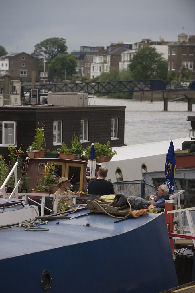 ? Si Barber 07739 472 922 Residents on a houseboat in Hammersmith West London