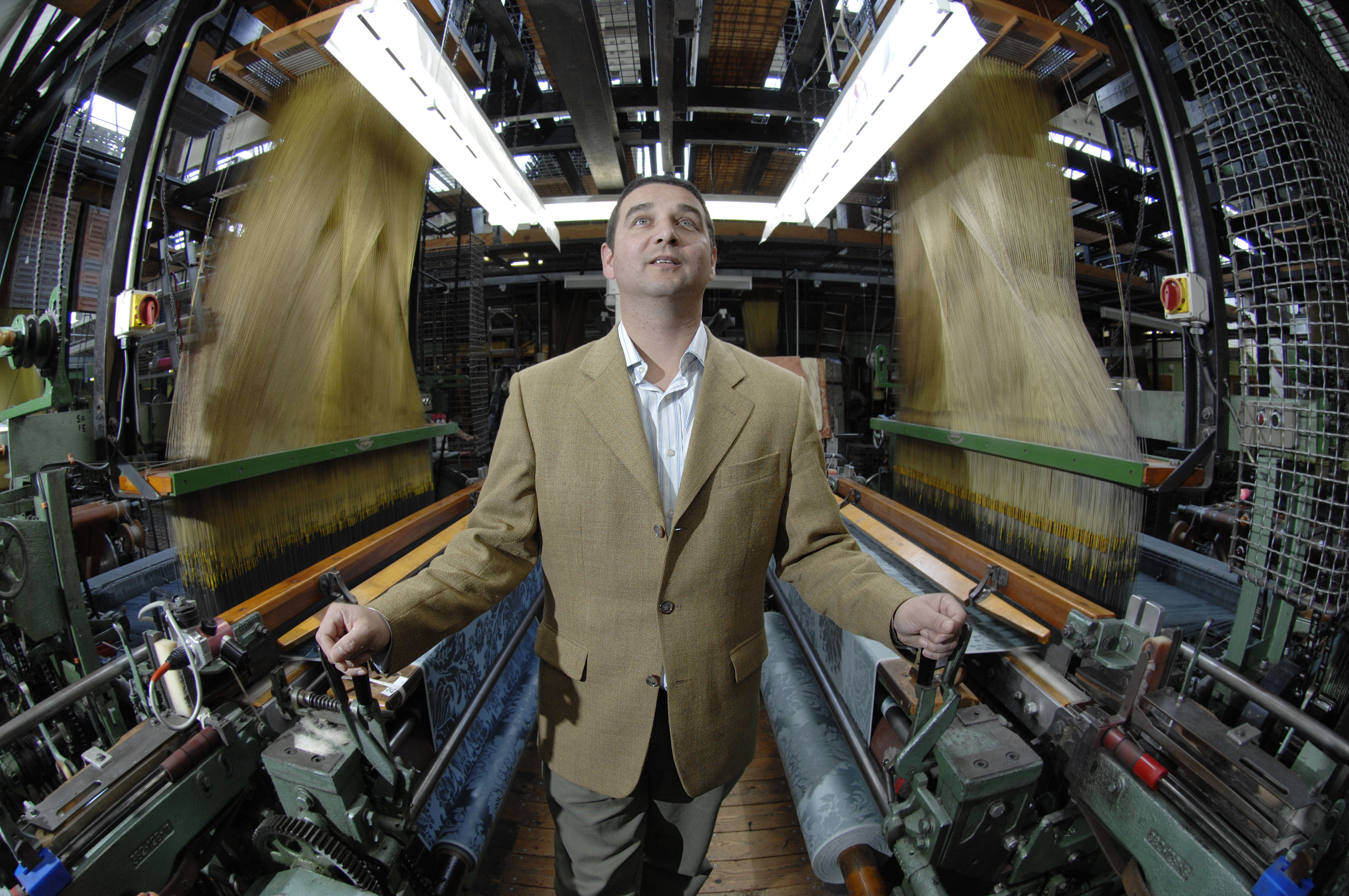 Pic by Si Barber - 07739 472 922 Neil Thomas of Gainsborough Silk Weavers in the samples room of his factory at Sudbury, Suffolk. Ordered by Katie Litchfield. 220307