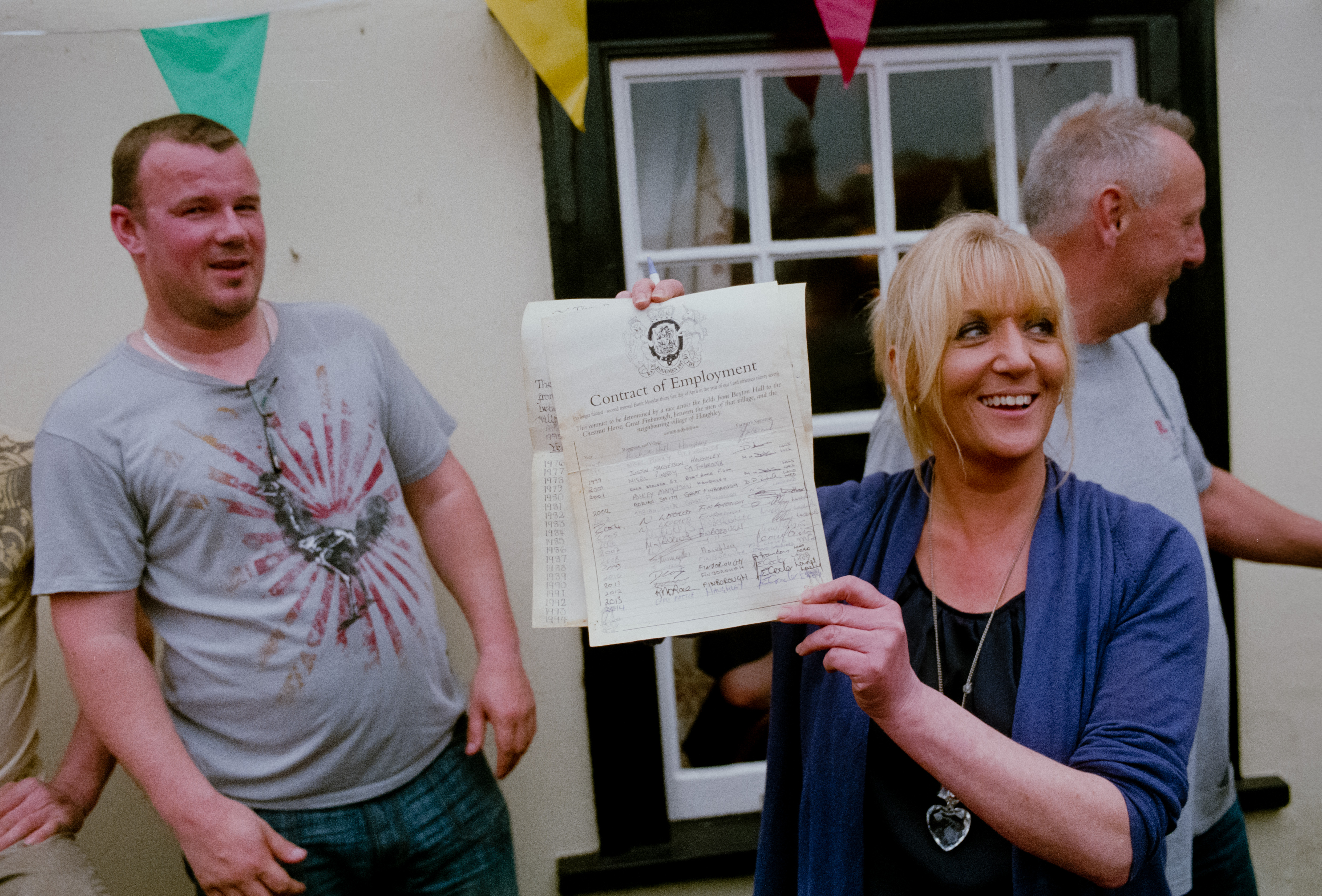 Anne Crocker of the Chesnut Horse pub presents the employment contract.