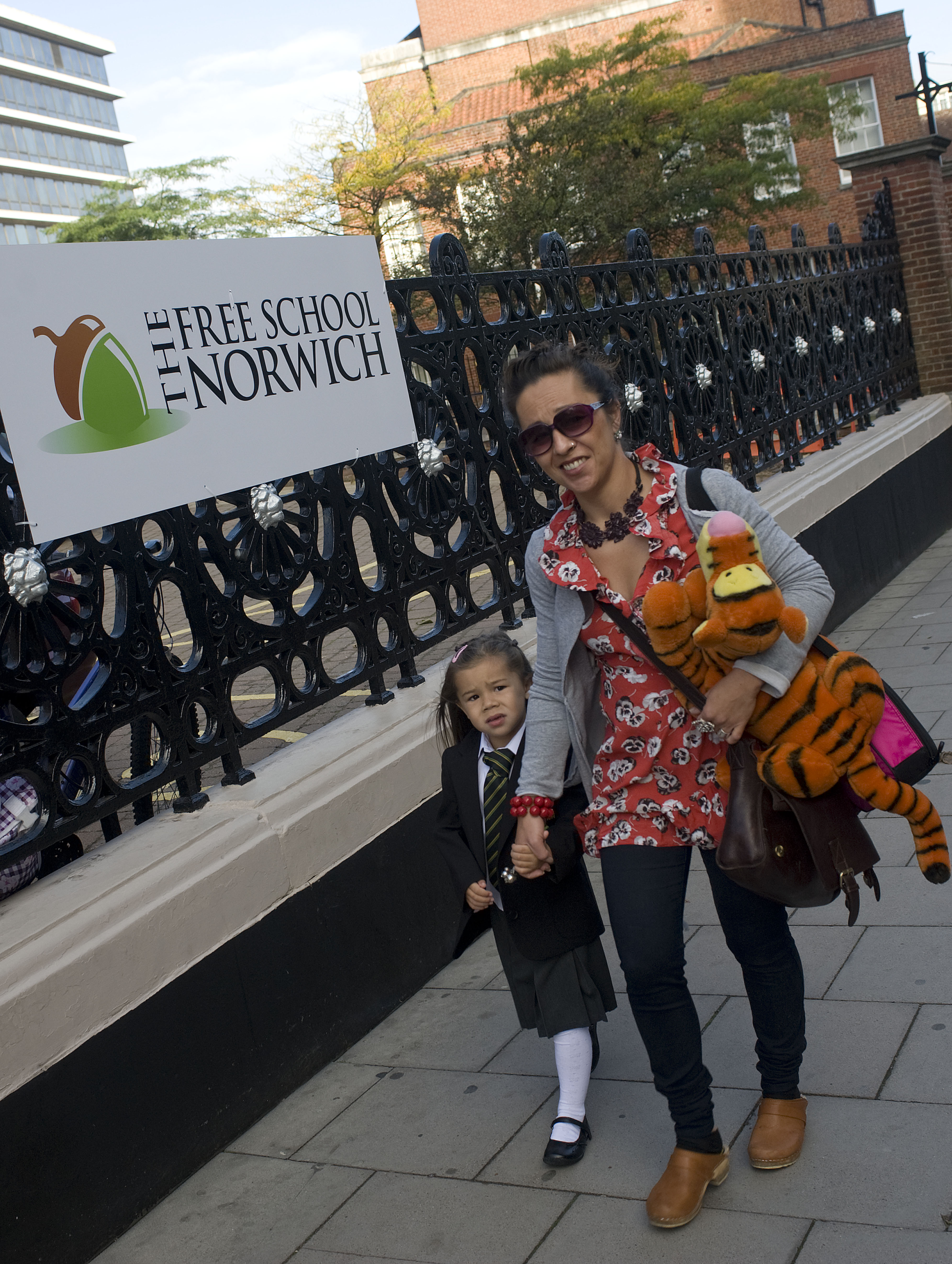 ? Si Barber 07739 472 922 Norwich Free School on it's first day of opening. A Free School in England is a type of Academy, a non-profit-making, independent, State-funded school which is free to attend but which is not controlled by a Local Authority. They are subject to the same School Admissions Code as all other State-funded schools.