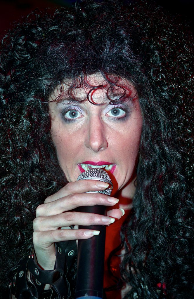 A Cher tribute act performing at Legends of Batley in West Yorkshire, UK
