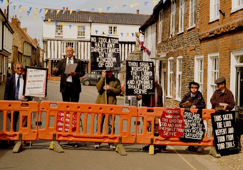 Anti Catholic demonstrations at Walsingham Shrine, Norfolk,UK on 31st May 2023, the Feast of the Visitation of the Blessed Virgin Mary