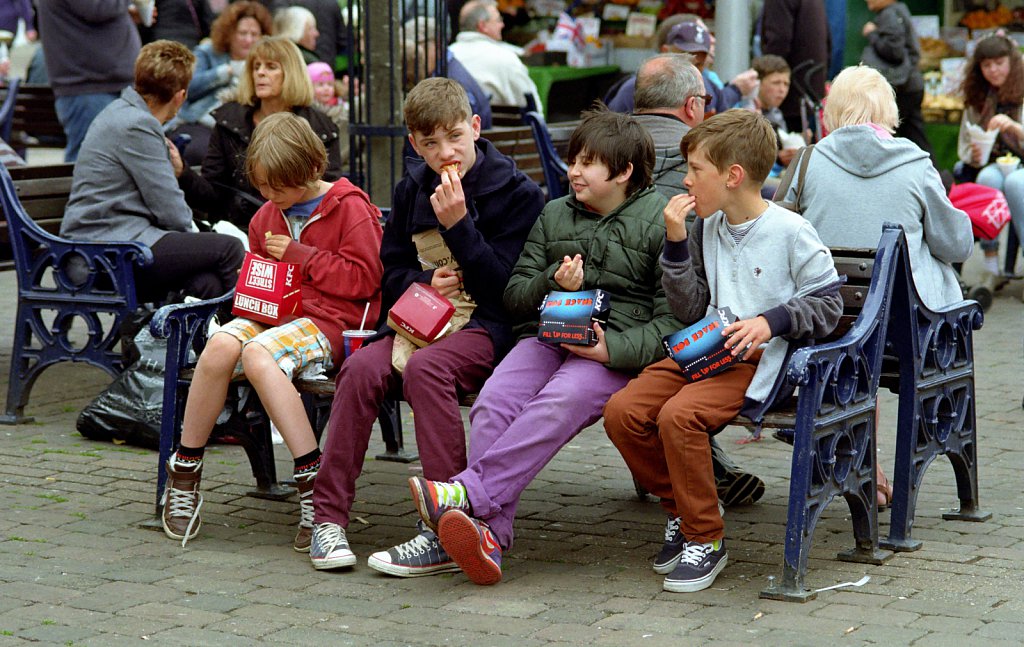 © Si Barber 07739 472 922 Boys eating chips. Great Yarmouth