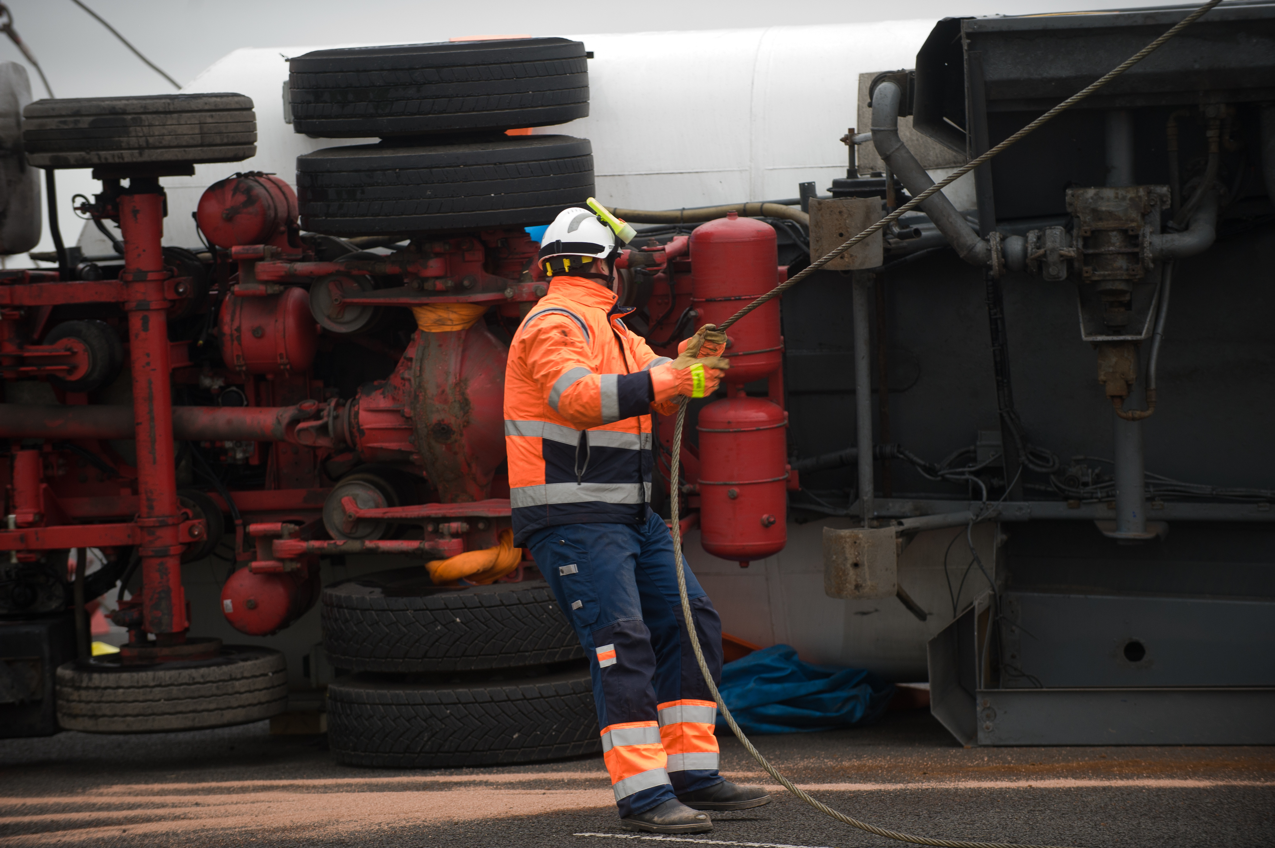 accident attach attached cables cambridge chemical closure constabulary danger emergency equipment equipped exercise firefighter firefighters firemen fumes hgv lorry officers operators police practice practise proctective recovery rehearse road services spill spillage tanker