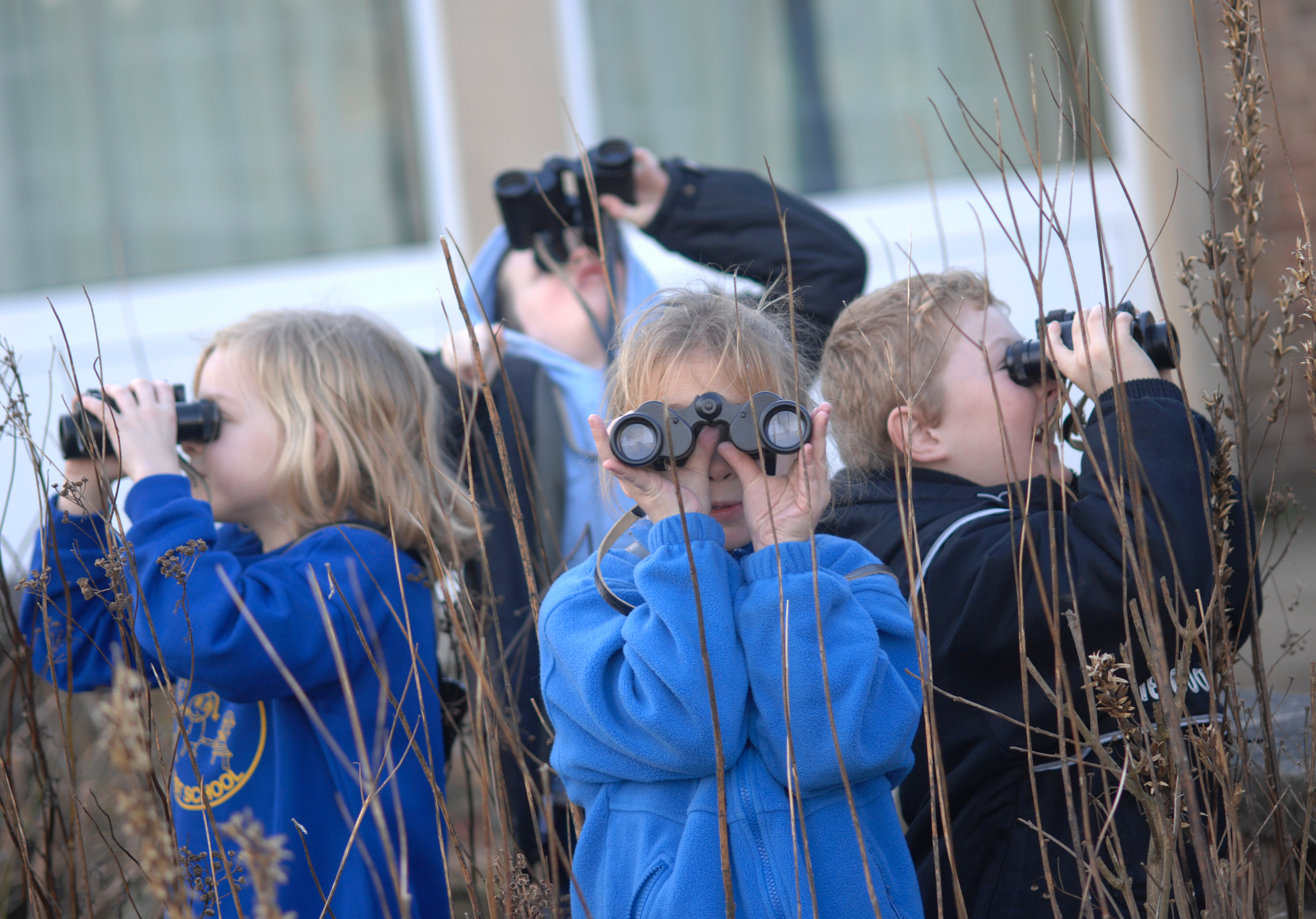 Pic ? Si Barber - 07739 472 922 Schoolchildren birdwatching