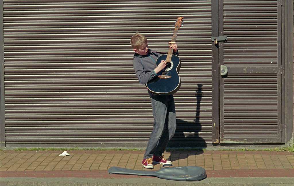 ?Si Barber Moral rights asserted. A young busker in Great Yarmouth,Norfolk