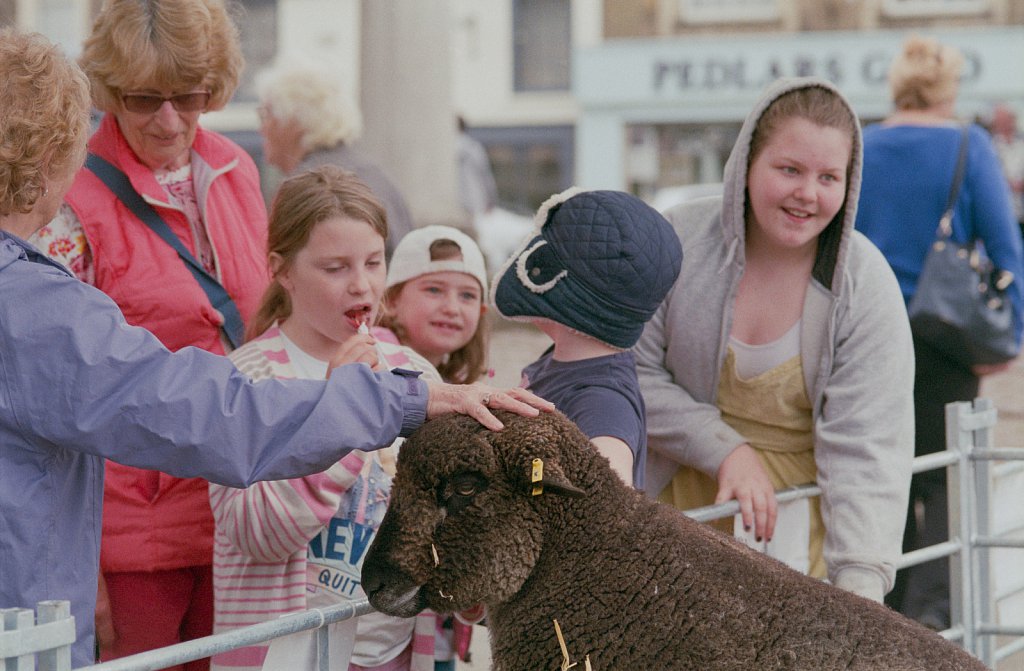 ©Si Barber. Moral rights asserted   Children petting a sheep at an auction in Swaffham, Norfolk