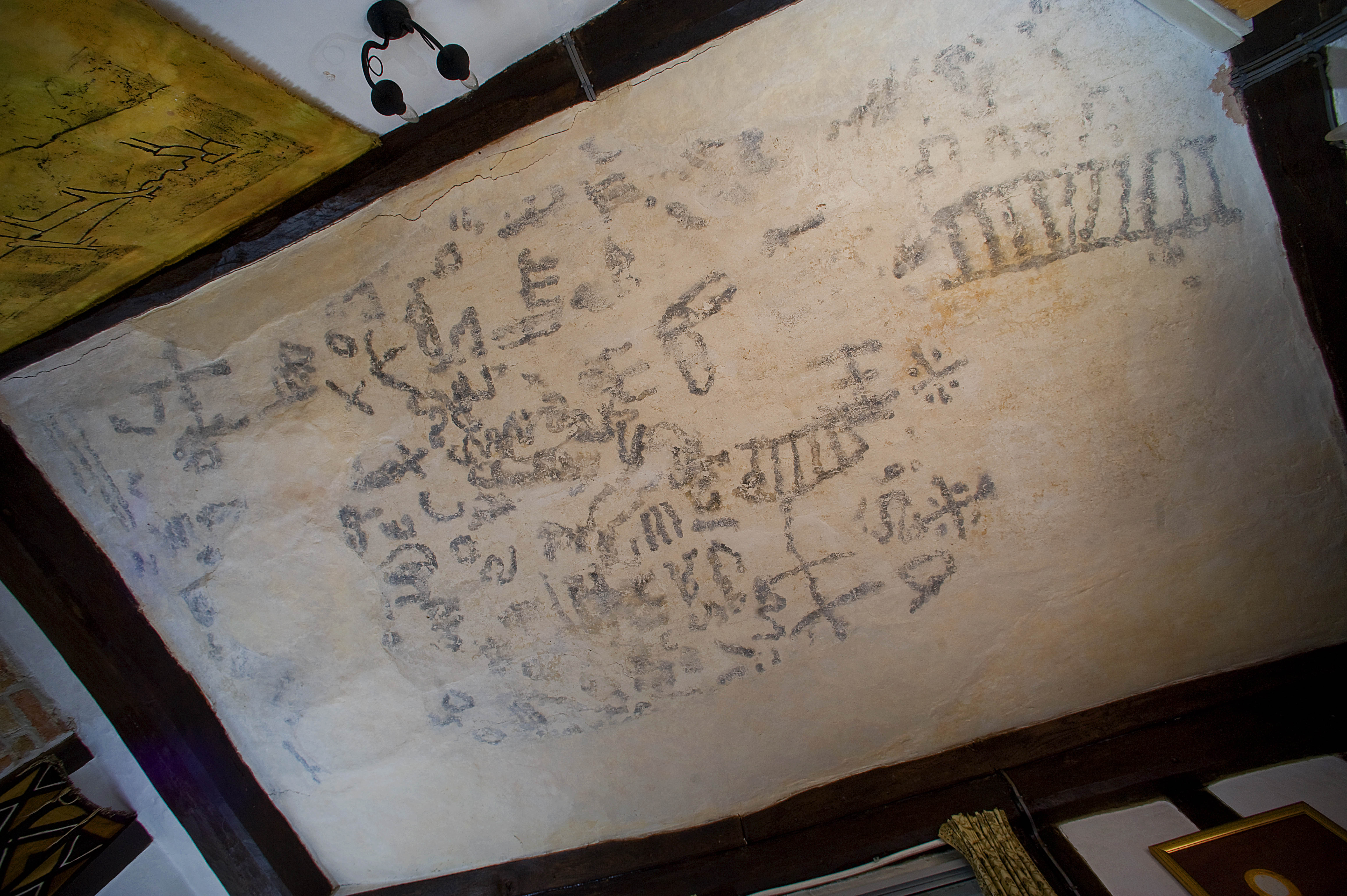 ©Si Barber. Moral rights asserted.   Candle soot markings on the ceilings of homes in Suffolk. They are thought to have been made in the 16th/17th Century to ward off evil.