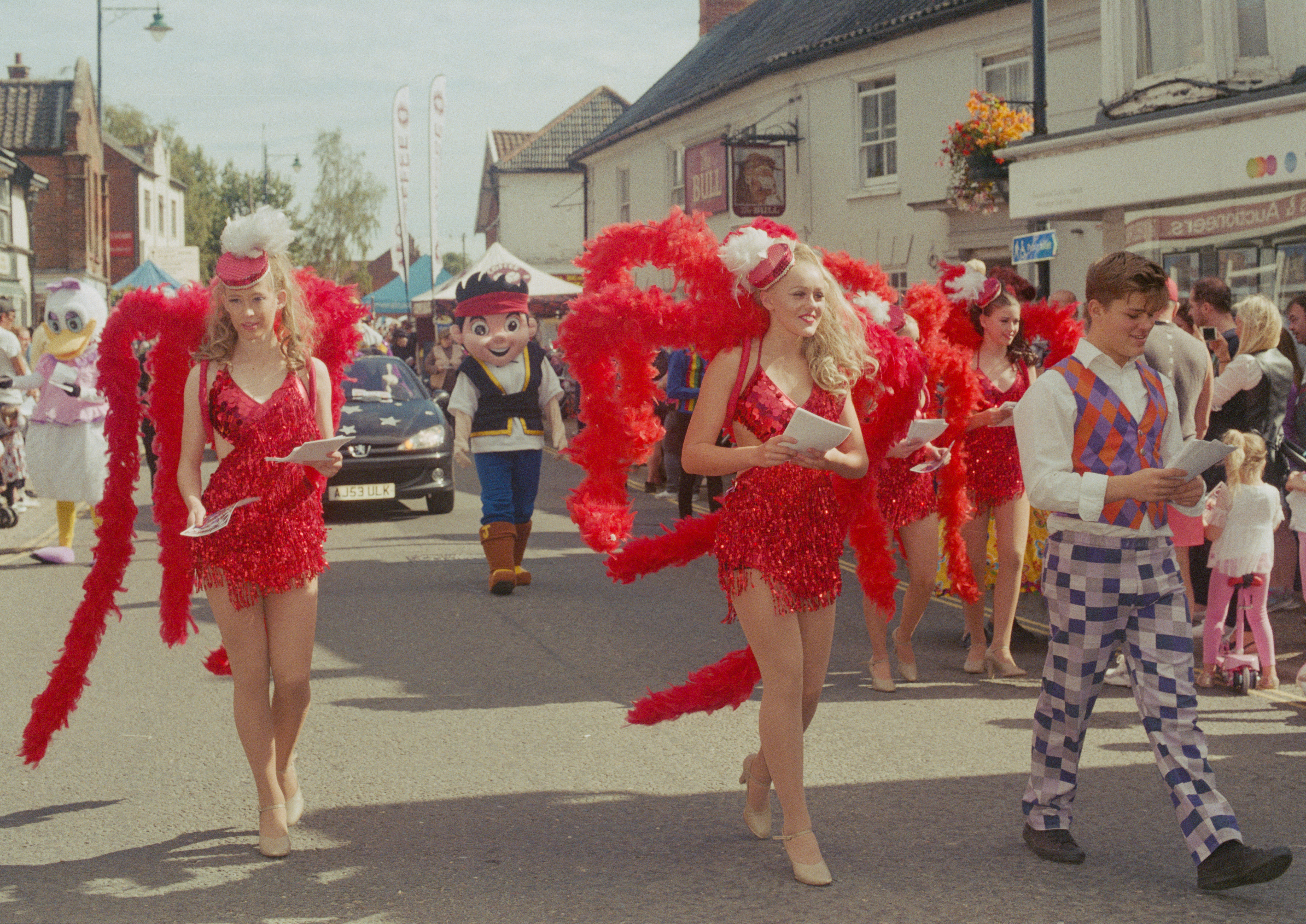 A youung woman handing out flyers at Watton carnival
