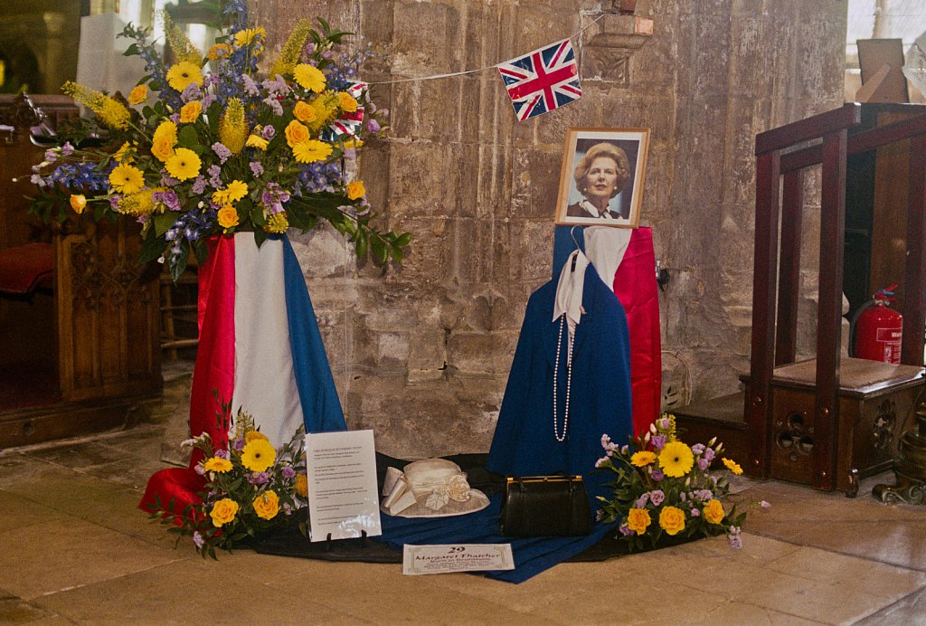 A floral tribute to Margaret Thatcher at St Mary’s church, Long Sutton,Lincolnshire.