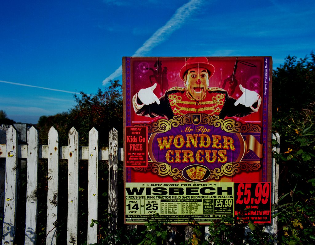 ©Si Barber 07739 472 922 Roadside poster advertising a circus