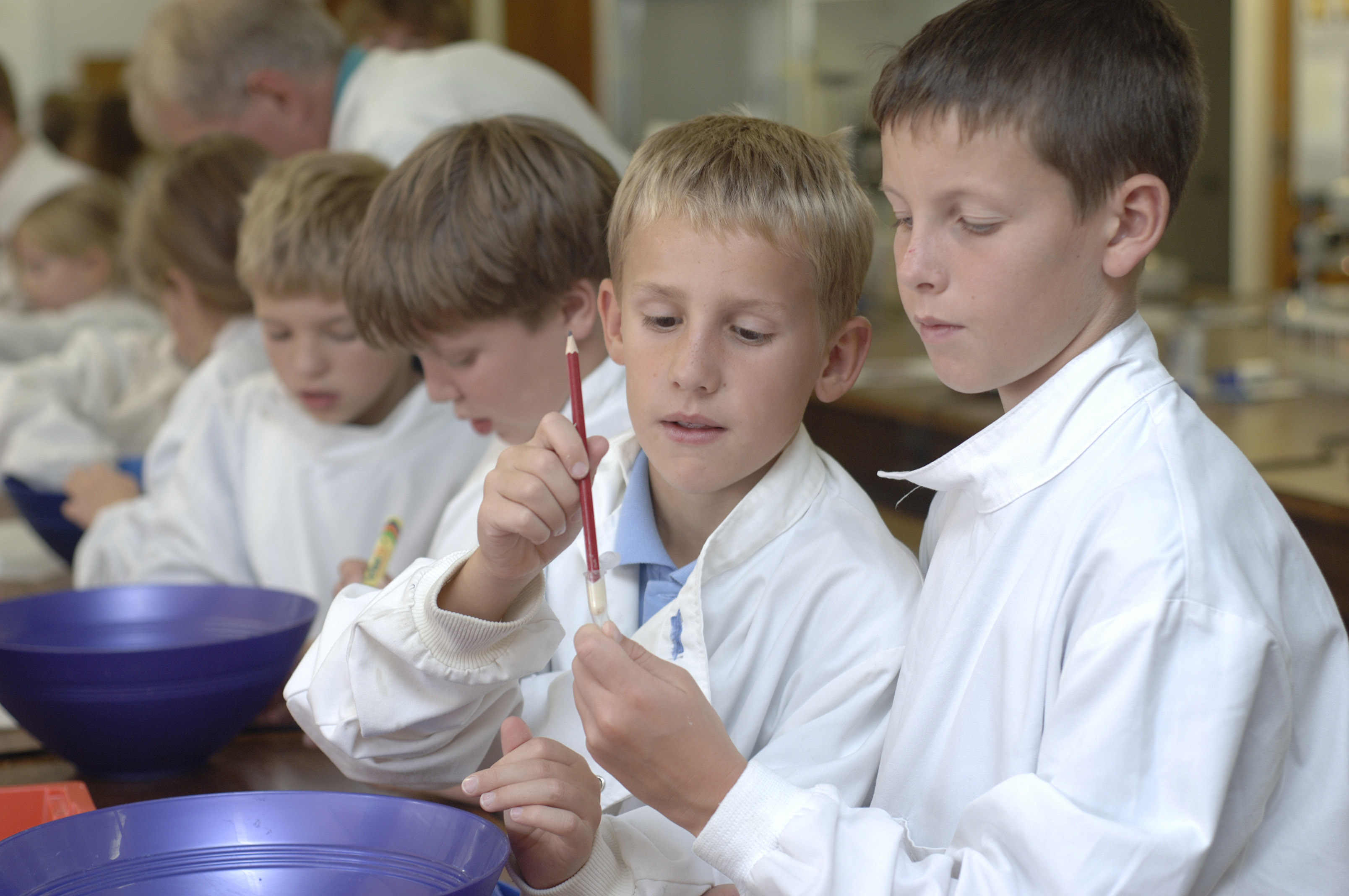 boys children class coats experiment girls micropscope primary pupils school science scools study studying white