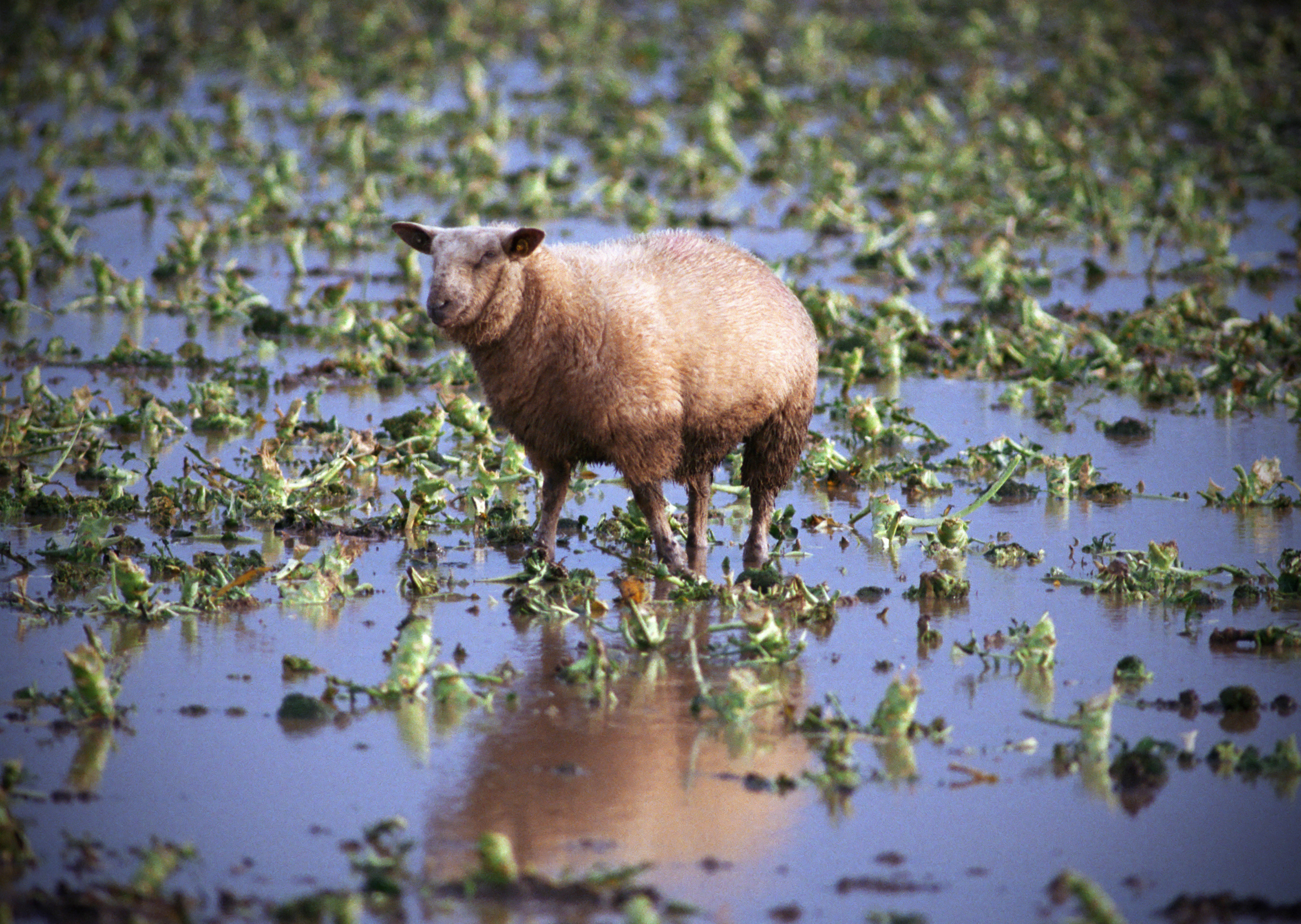 ? Si Barber 07739 472 922 Sheep standing in flood waters, Lincolnshire, UK