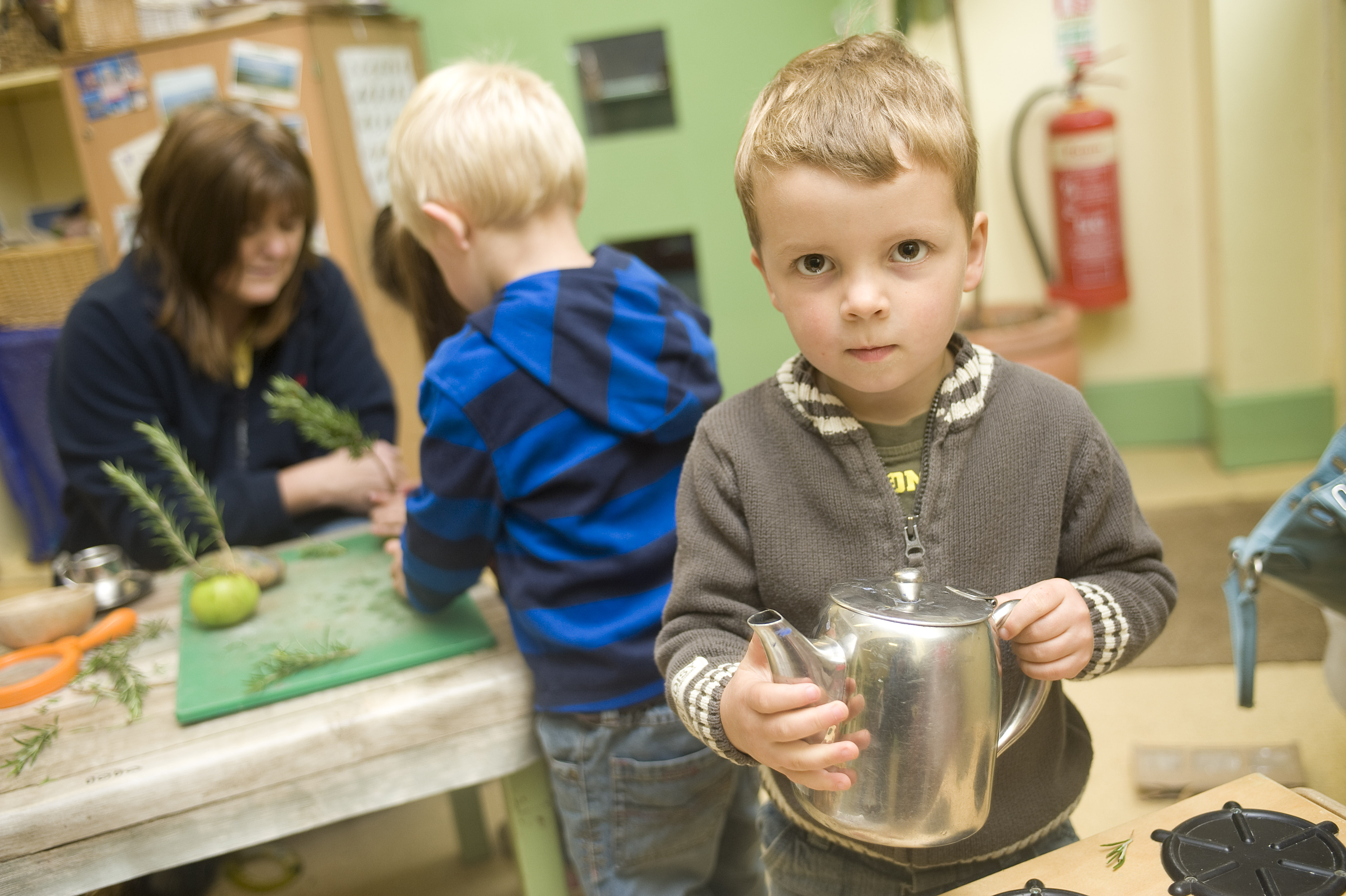 ?Si Barber/07739 472 922 Staff & children at a nursery leanring cooing skills.