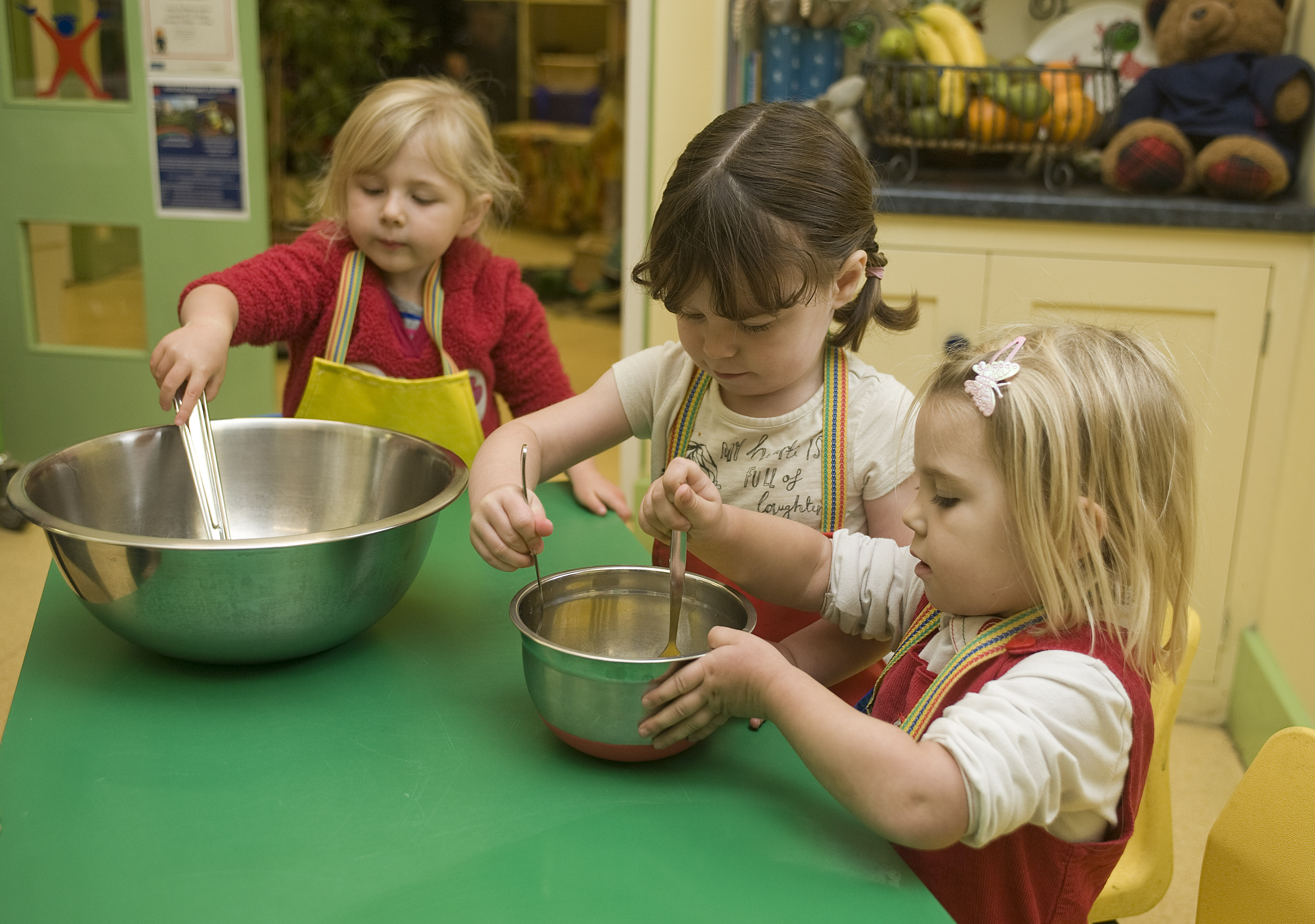 ©Si Barber. Moral rights asserted.   ?Si Barber/07739 472 922 Staff & children at a nursery leanring cooing skills.