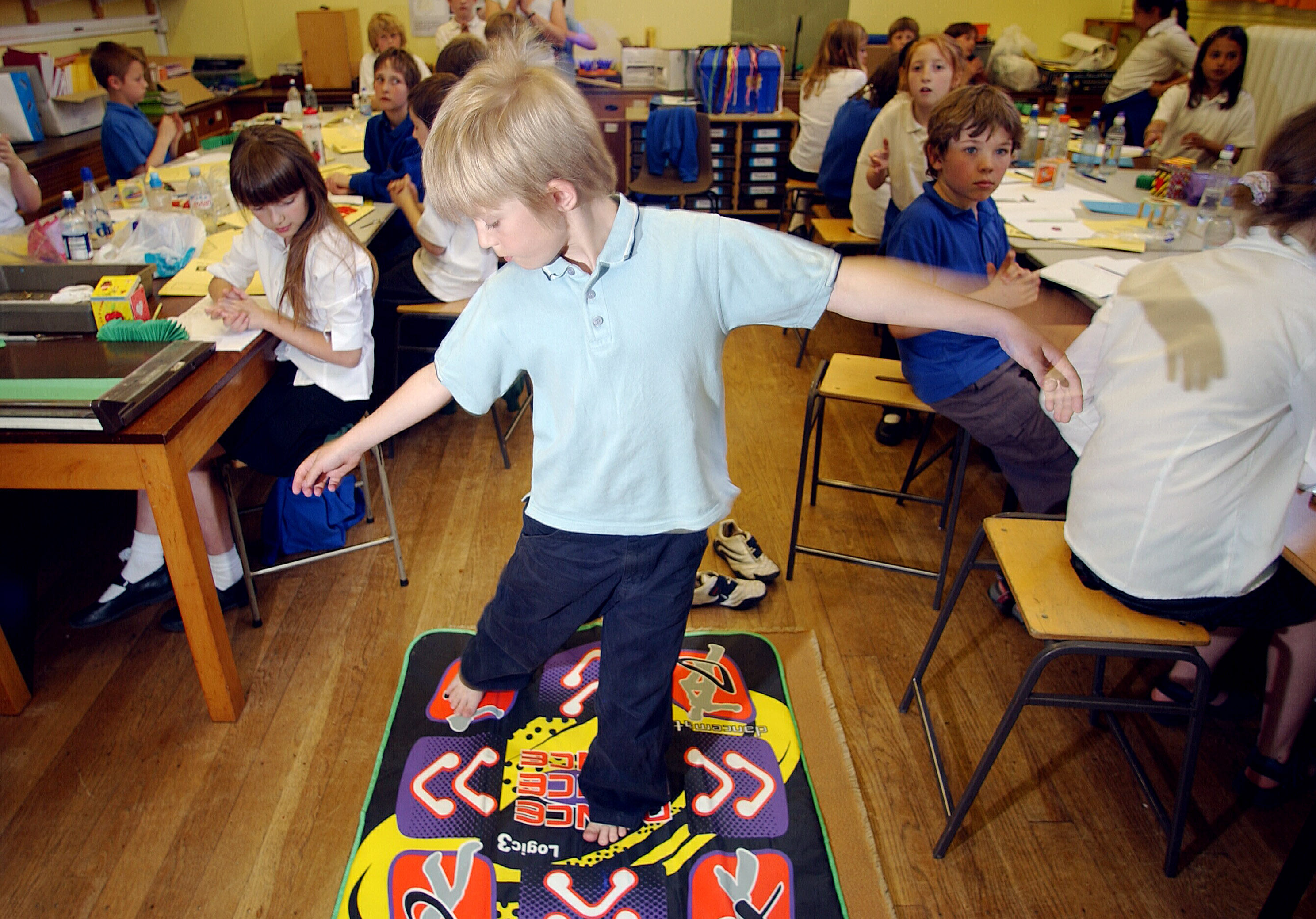 ©Si Barber. Moral rights asserted.   Mandatory Credit: ? Si Barber/07739 472 922 Year 5 children learning Spanish using an interactive dance mat