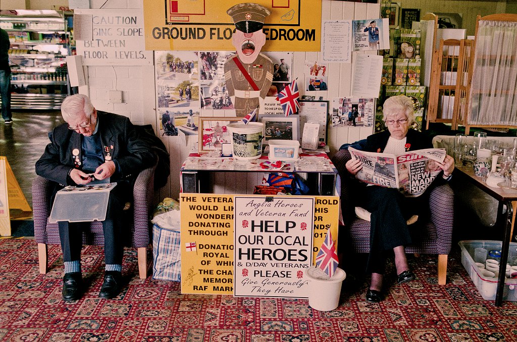 A couple collecting for the Help for Heroes charity at the Anglia Motel, Fleet Hargate, Lincolnshire.