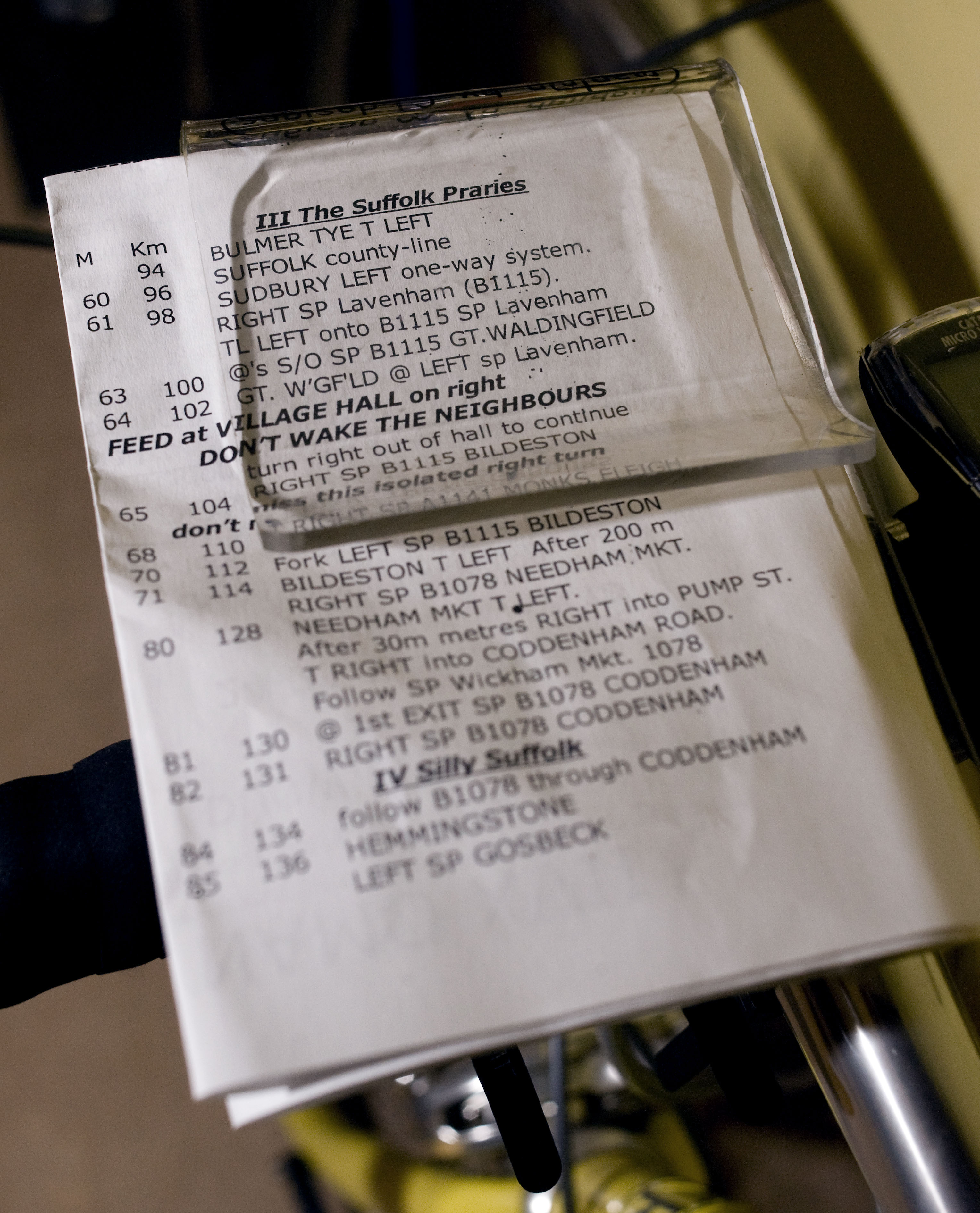 Si Barber 07739 472 922 Ordered by Leila Rawlins The Dunwich Dynamo cycle race in which competitors ride 120 mile route from London Fields to Dunwich in Suffolk overnight. Picture shows route map on a rider's cycle.