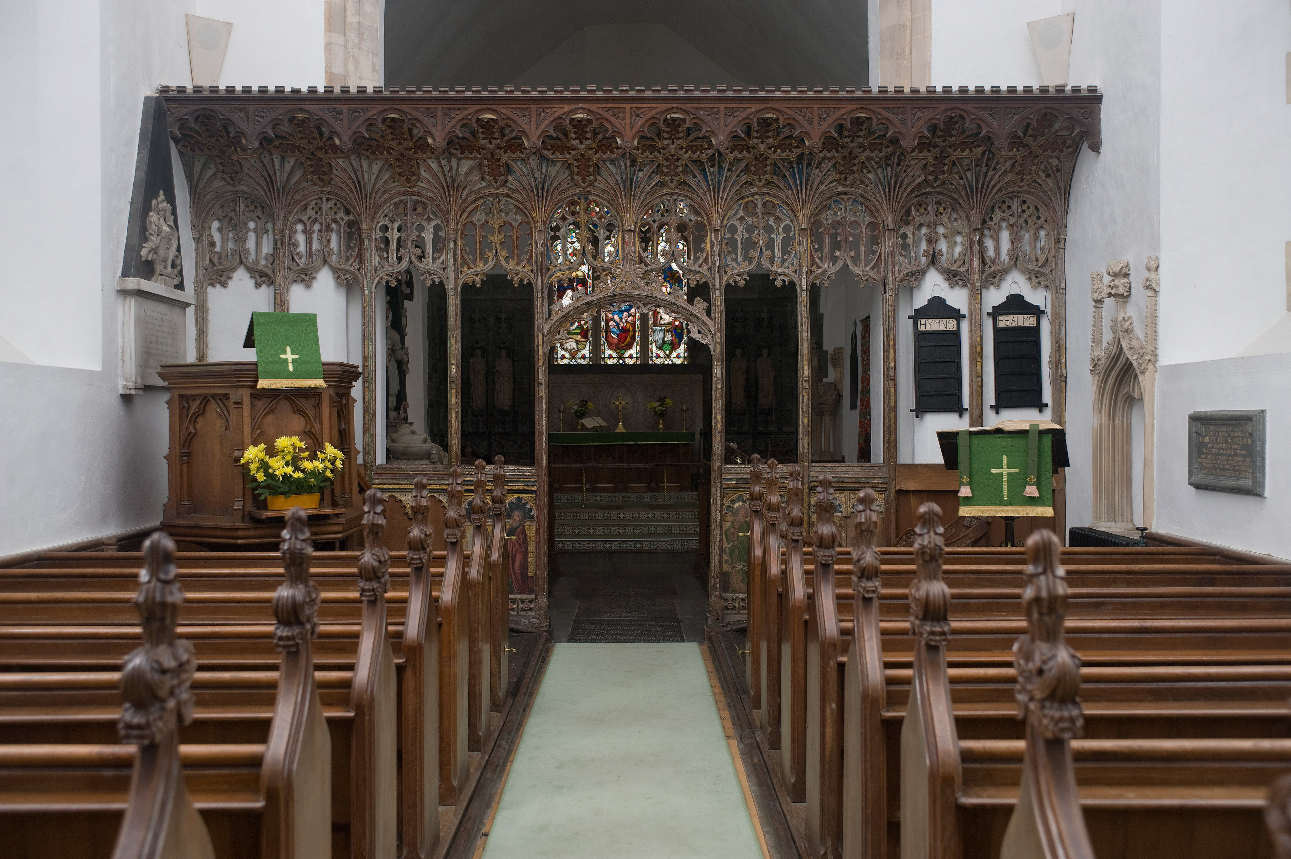 The rood screen at the church of St Andrew, Bramfield, Suffolk.