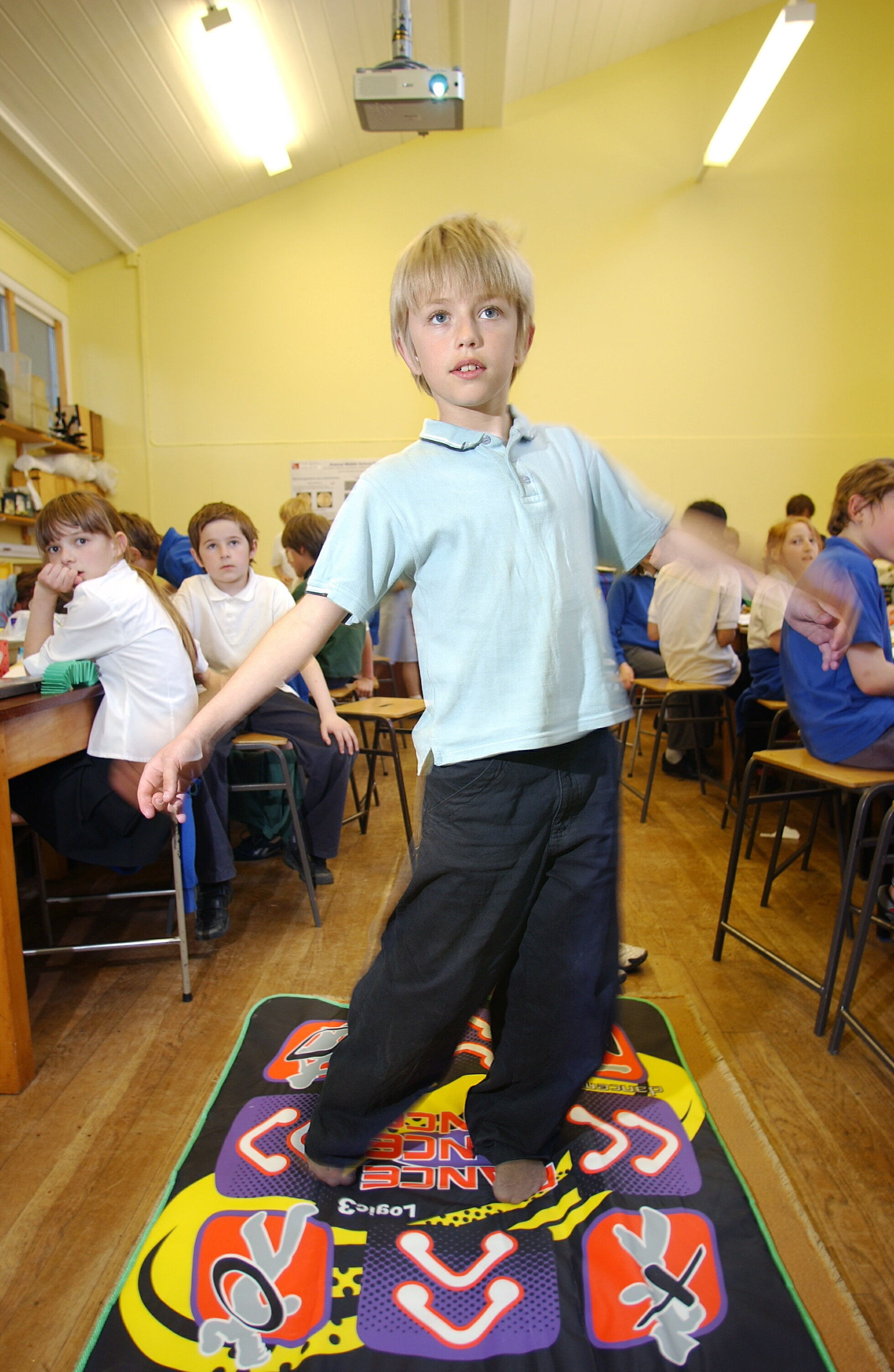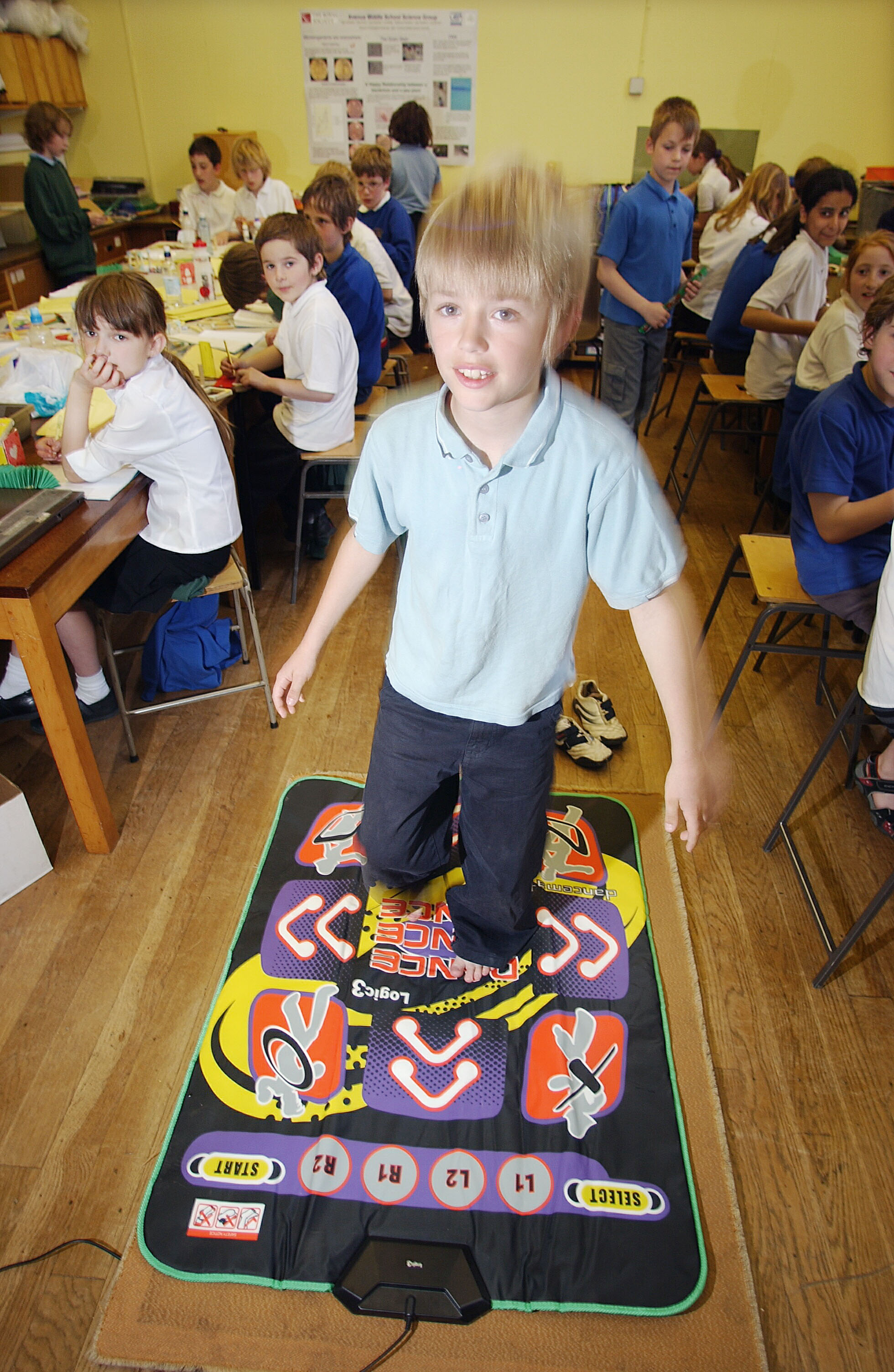 Mandatory Credit: ? Si Barber/07739 472 922 Year 5 children learning Spanish using an interactive dance mat