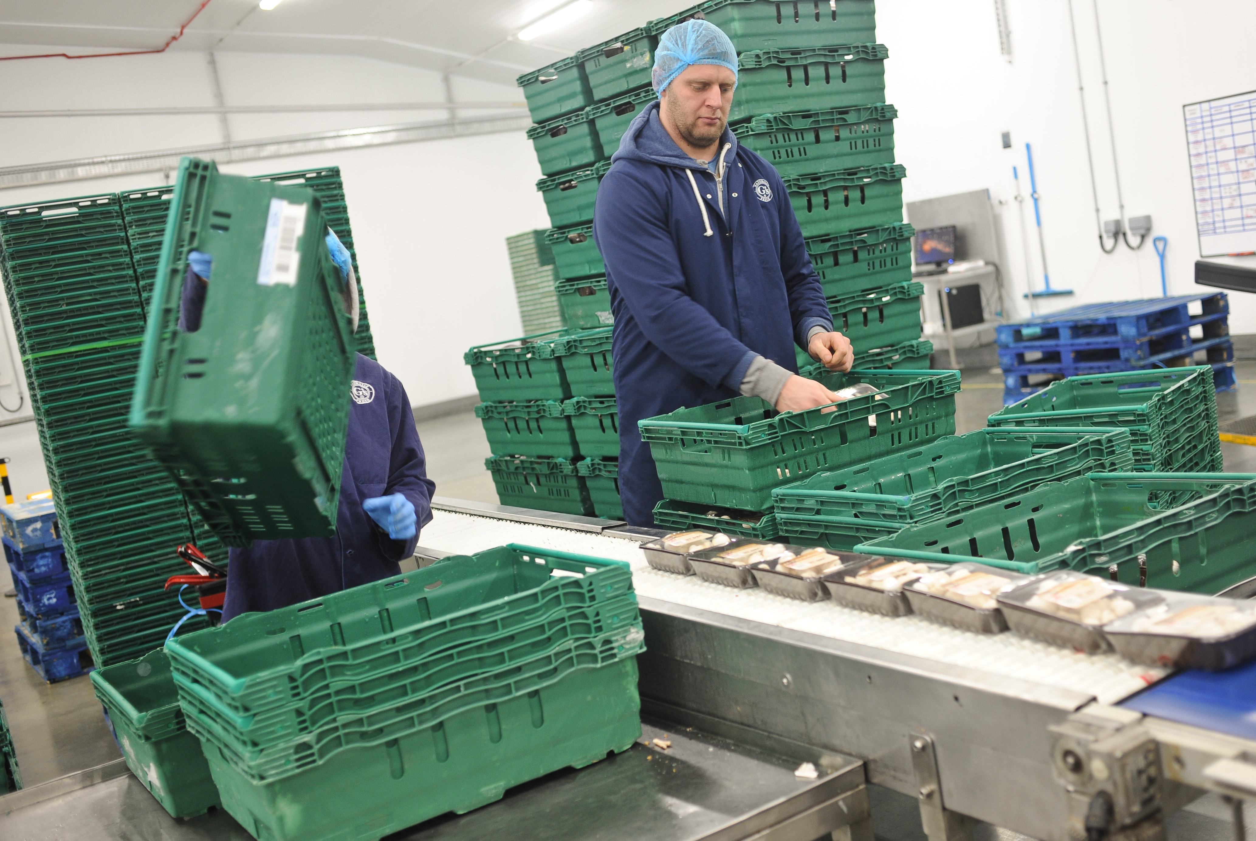 G's vegetable growers near Ely in Cambridgeshire. The company employs and provides accommodation and facilities for many workers from Eastern Europe. Picture shows - Mushroom growing and processing.