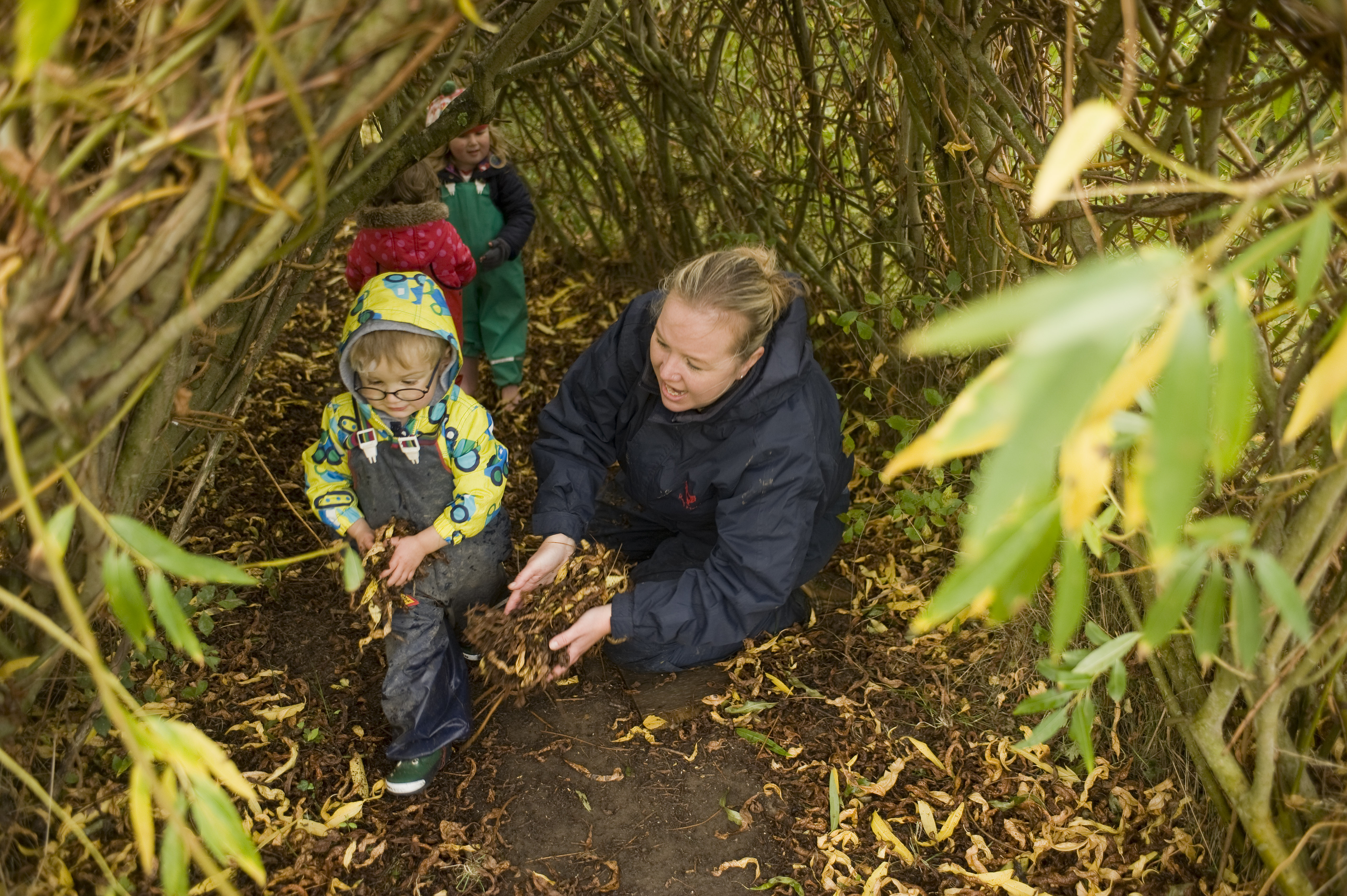 ?Si Barber/07739 472 922 Children at a private nursery playing outside with their carers.