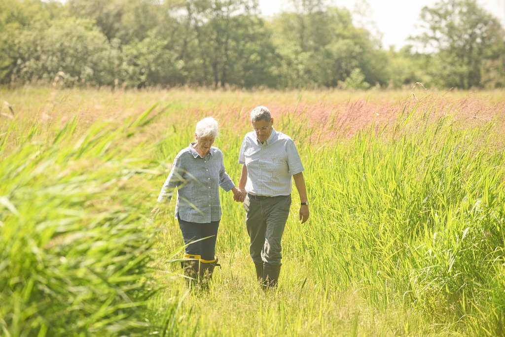 Tim & Gelis Harris on Catfield Fen, Norfolk, UK. The couple are campaiging to limit water abtraction in the area which they believe is damaging the habitat on the local wetlands.
