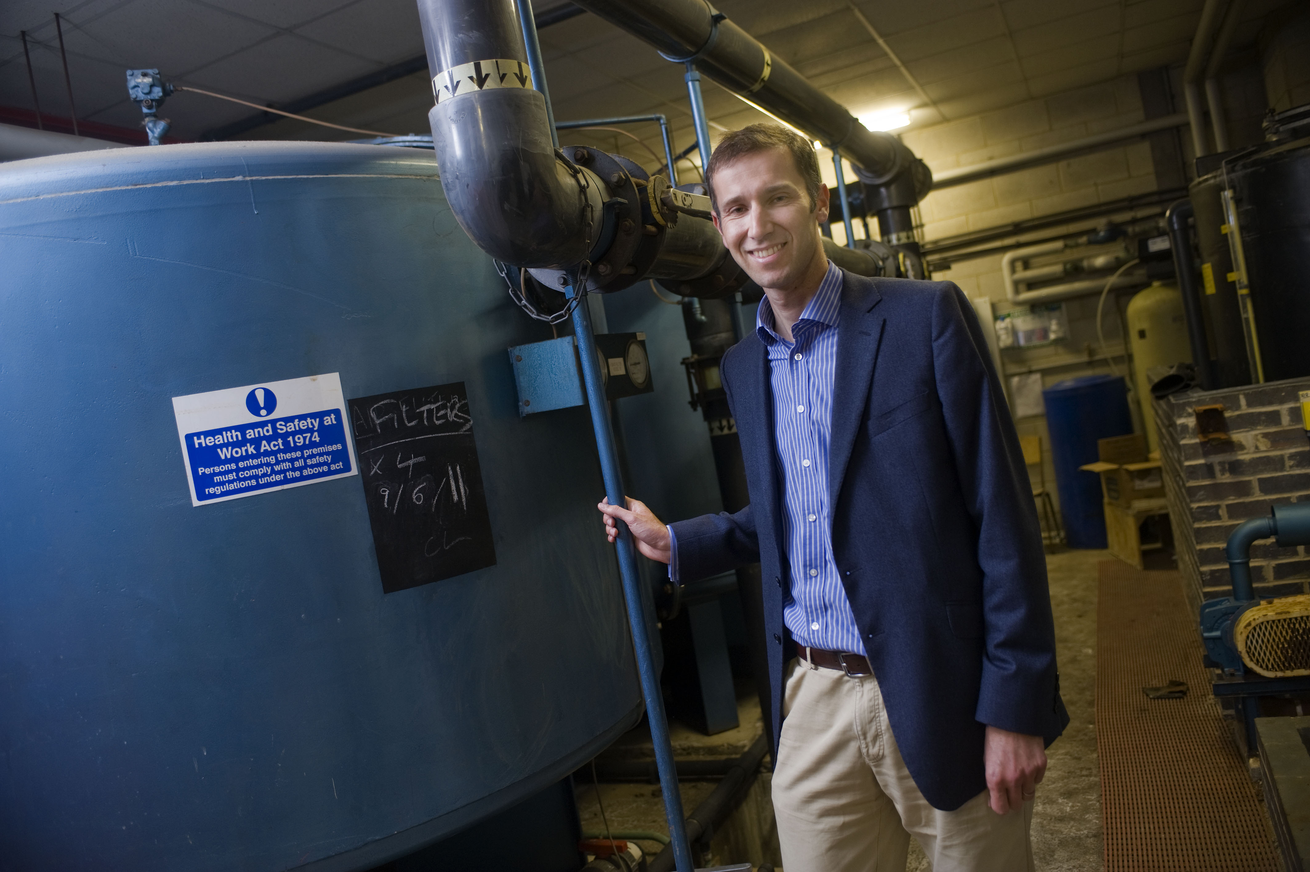 ? Si Barber 07739 472 922 Greg Hilton MD of GG Eco Solutions at Culford School, Suffolk. Here he is seen with the schools old oil fired boiler which is to be replaced by a wood fired boiler.