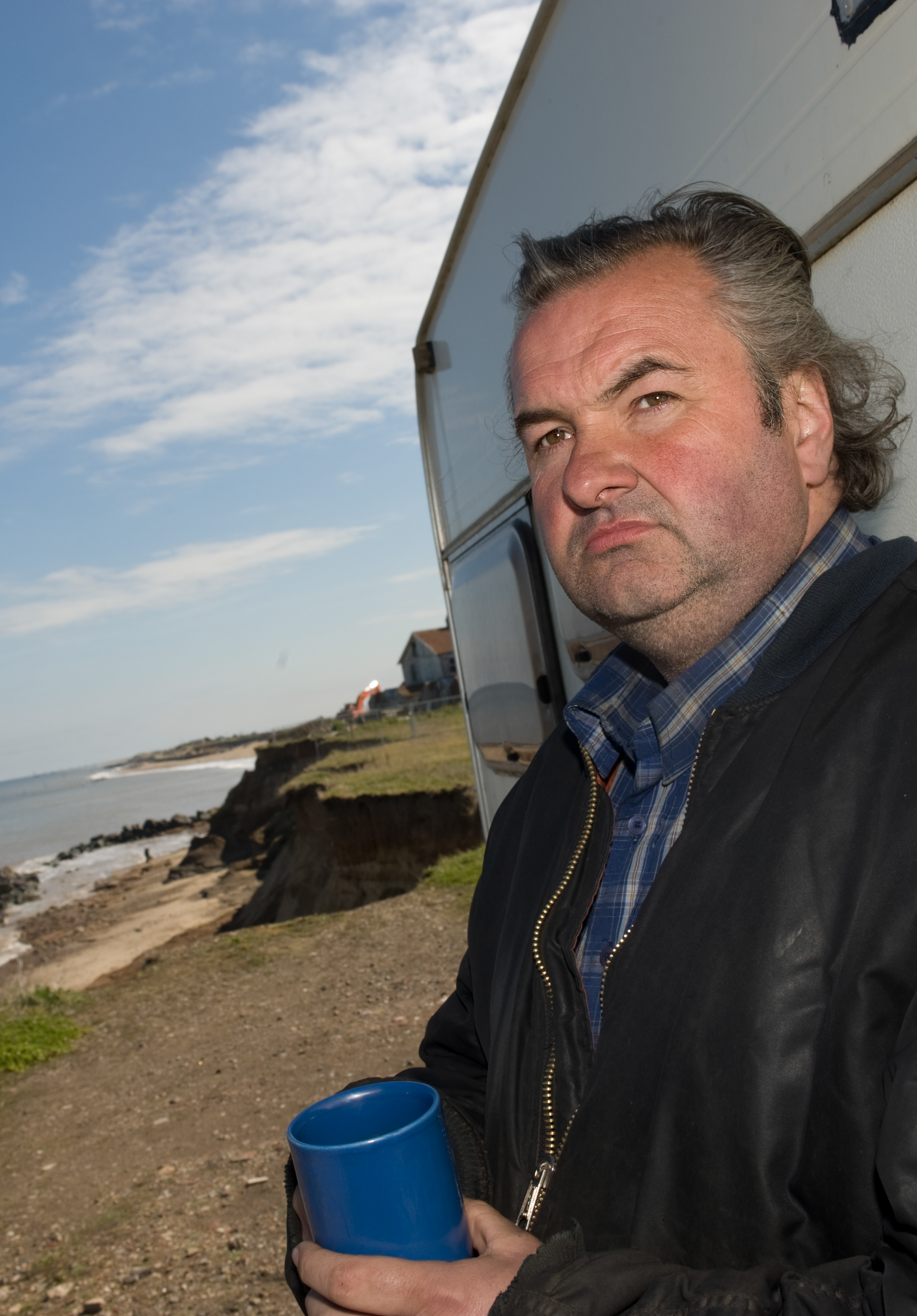 Nigel Cutting who lives in a caravan on the cliff edge in Happisburgh, Norfolk