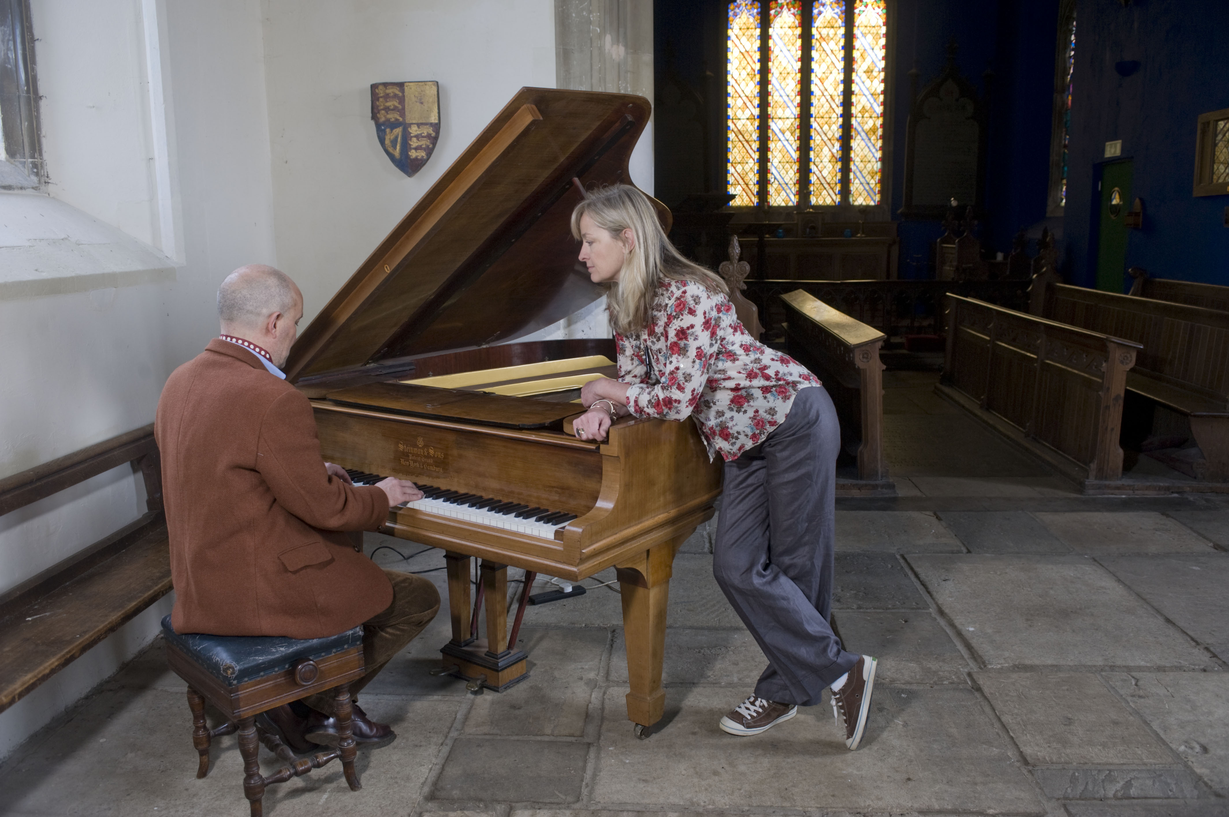 Kit and Kate Hesketh Harvey with their church in Stoke Ferry, Norfolk.