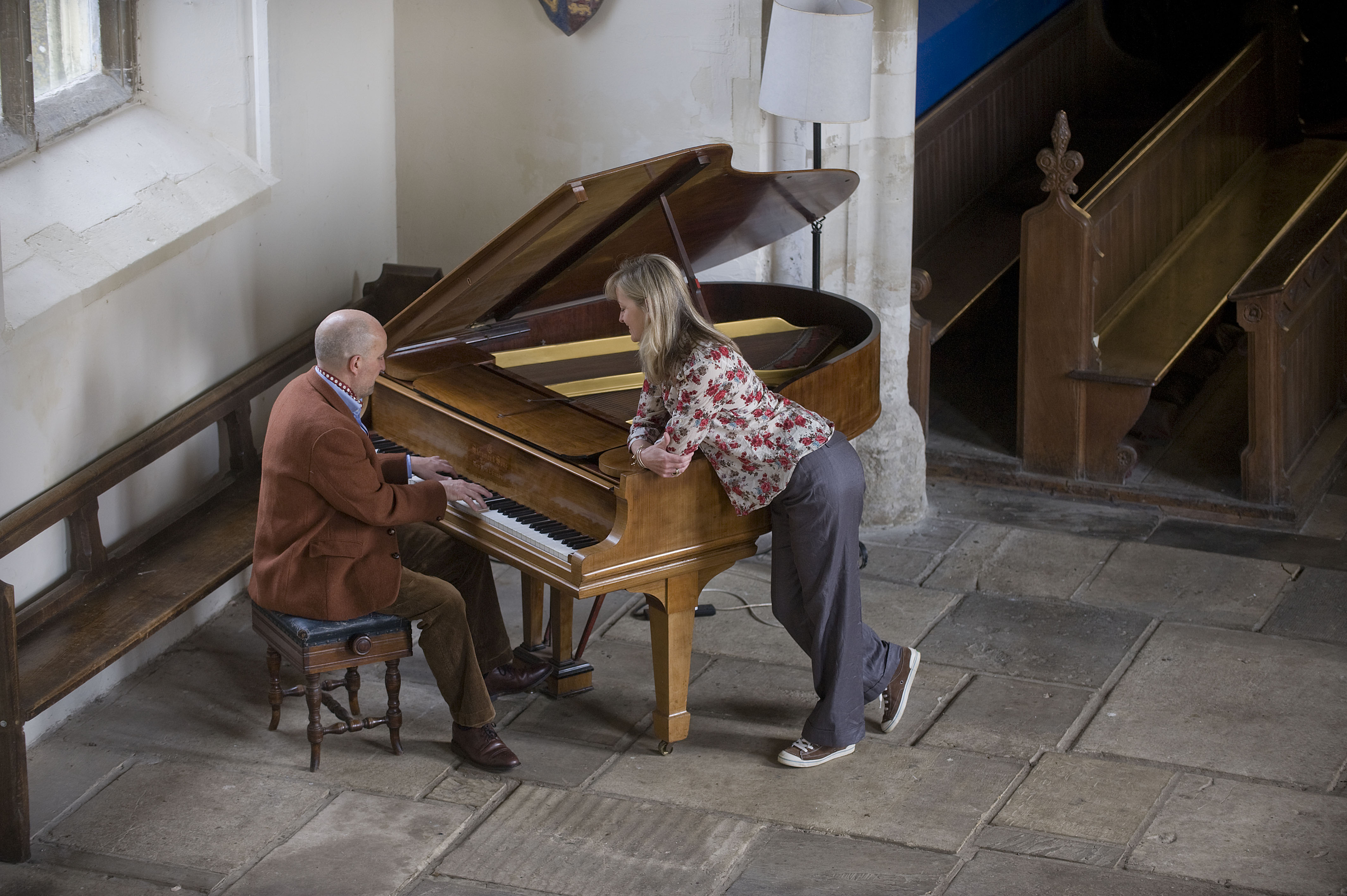 Kit and Kate Hesketh Harvey with their church in Stoke Ferry, Norfolk.