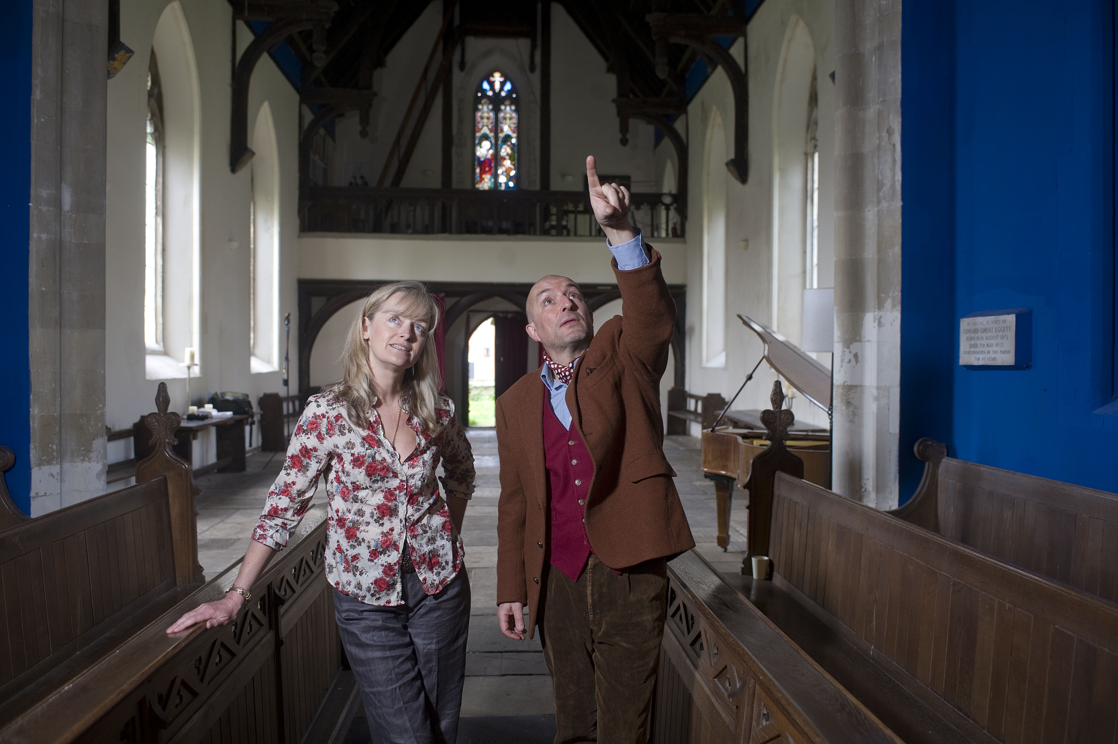 Kit and Kate Hesketh Harvey with their church in Stoke Ferry, Norfolk.