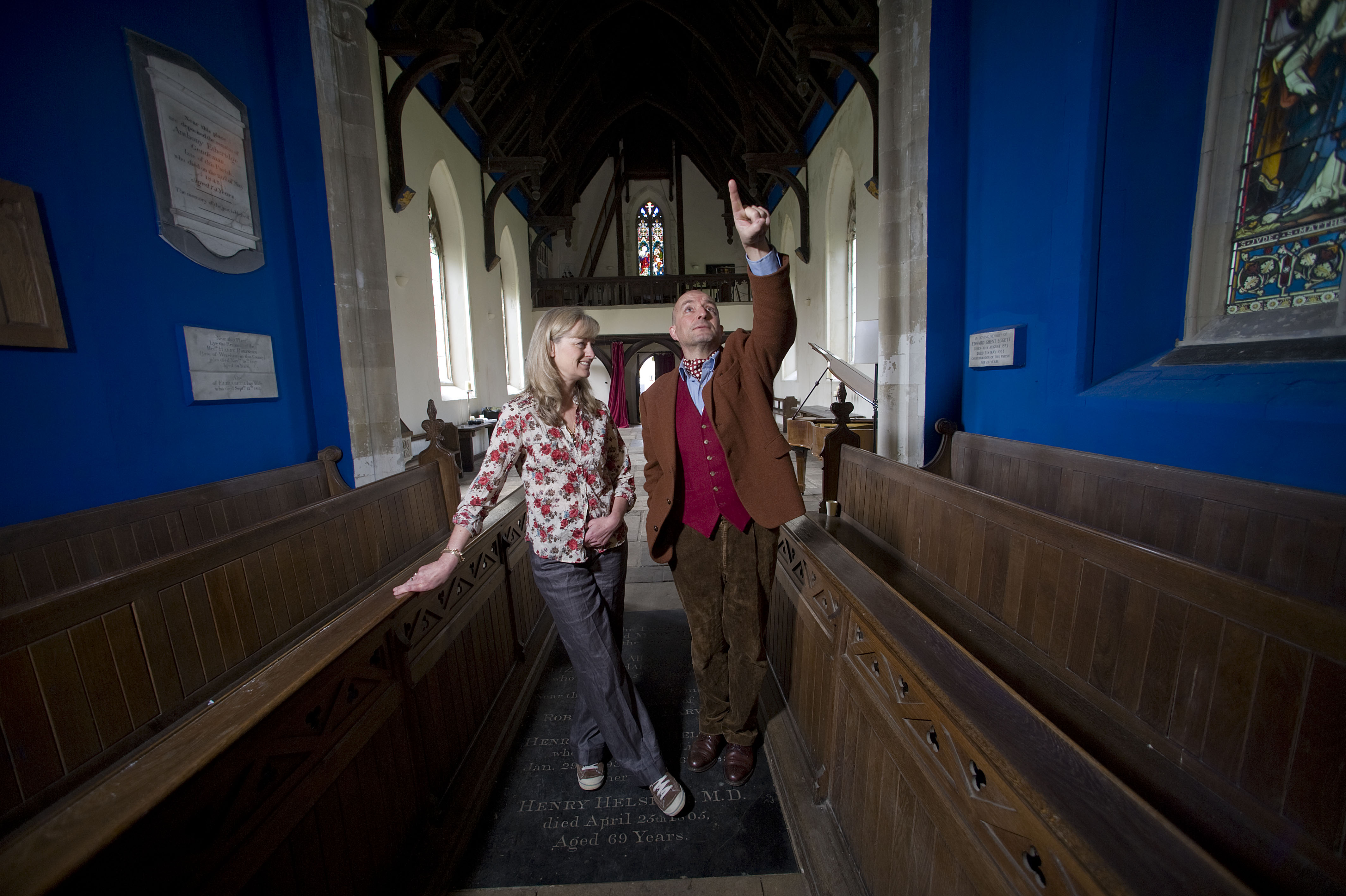 Kit and Kate Hesketh Harvey with their church in Stoke Ferry, Norfolk.