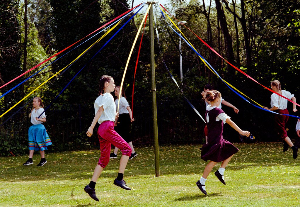 Children maypole dancing at Dereham Peace Day 2019
