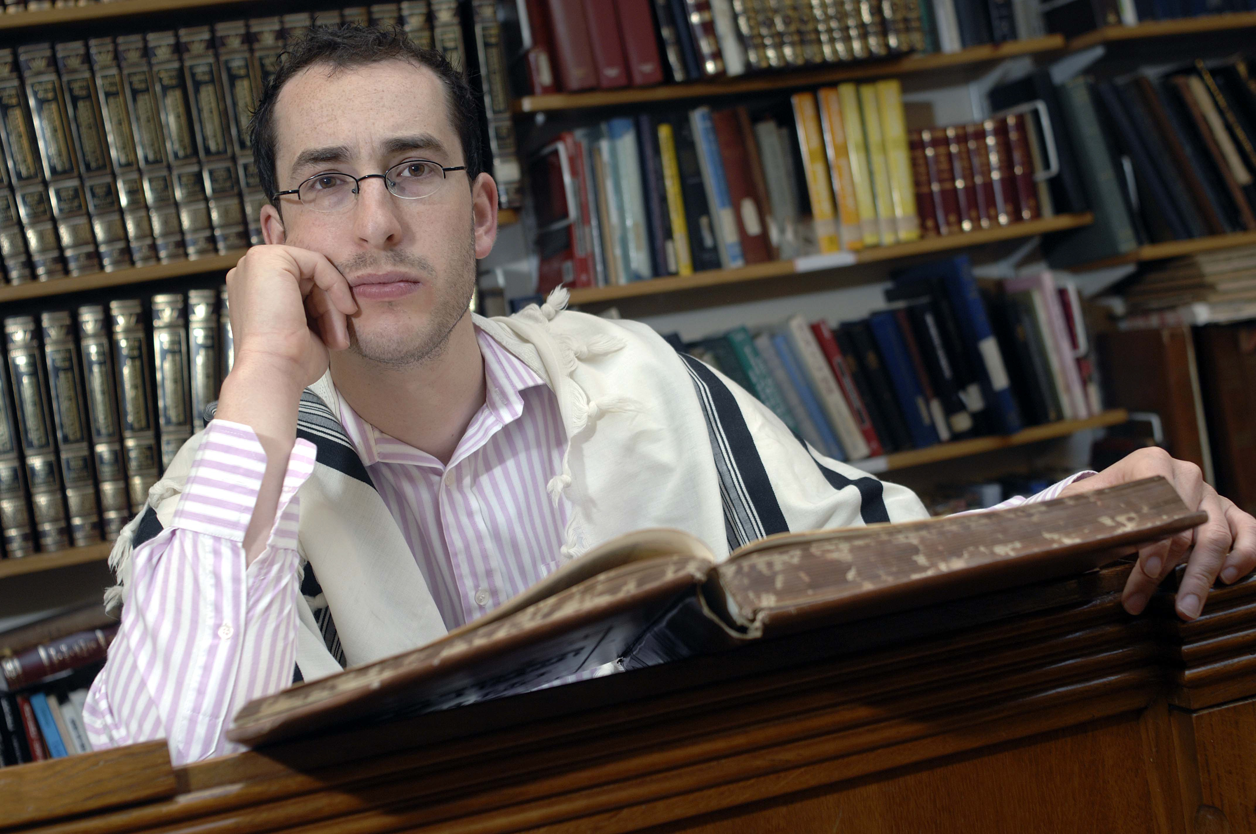 Pic by Si Barber - 07739 472 922 Cambridge student and actor Thomas Yarrow who is due to play Shylock in Shakespeare's Merchant of Venice visiting the Cambridge Synagogue to study Jewish culture with Nathan Jaffay. Pic shows Nathan Jaffay. Ordered by Jo Ruck 040507