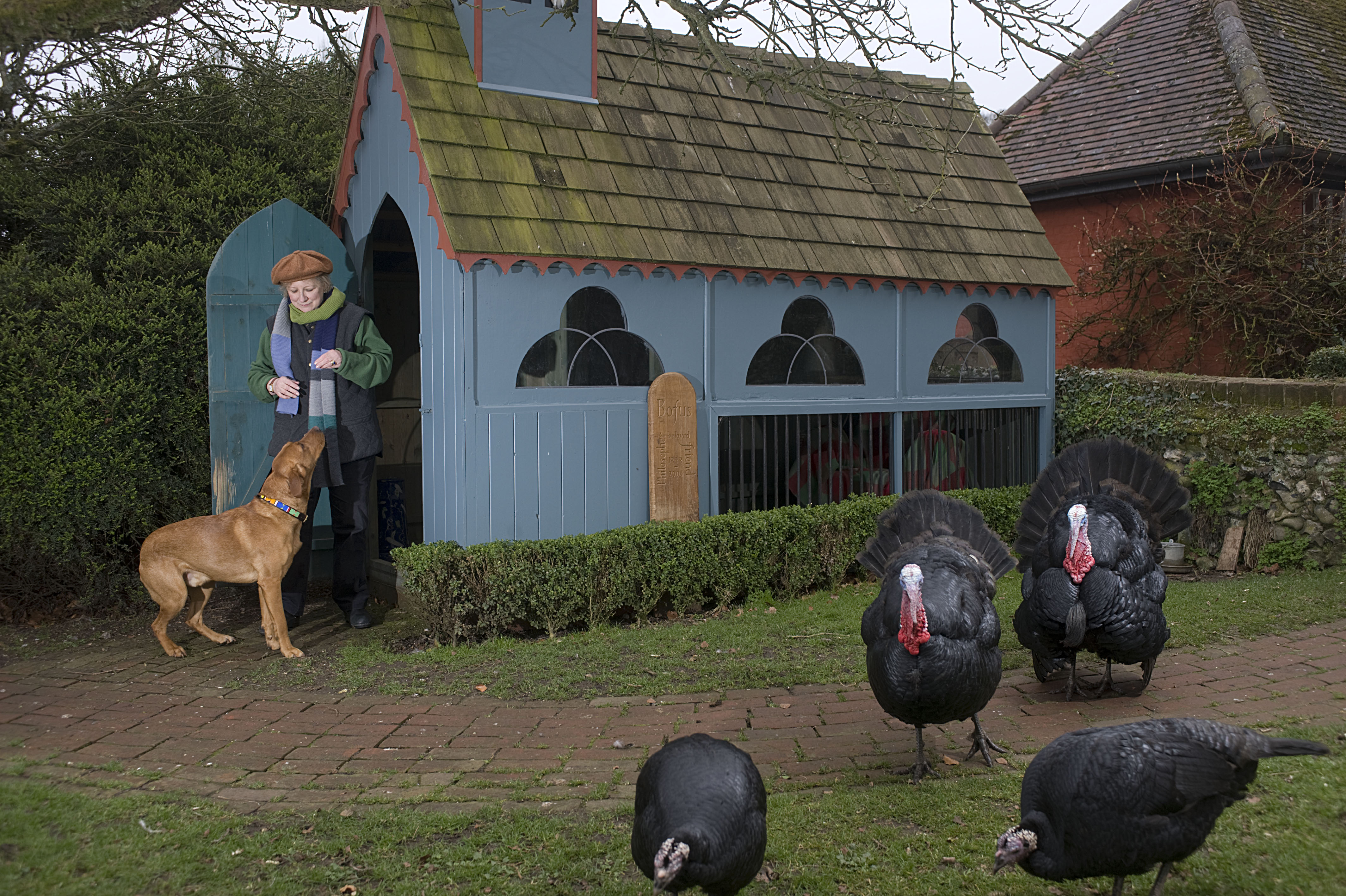 Lady Carla Carlisle at home with her labrador Otis in Suffolk.