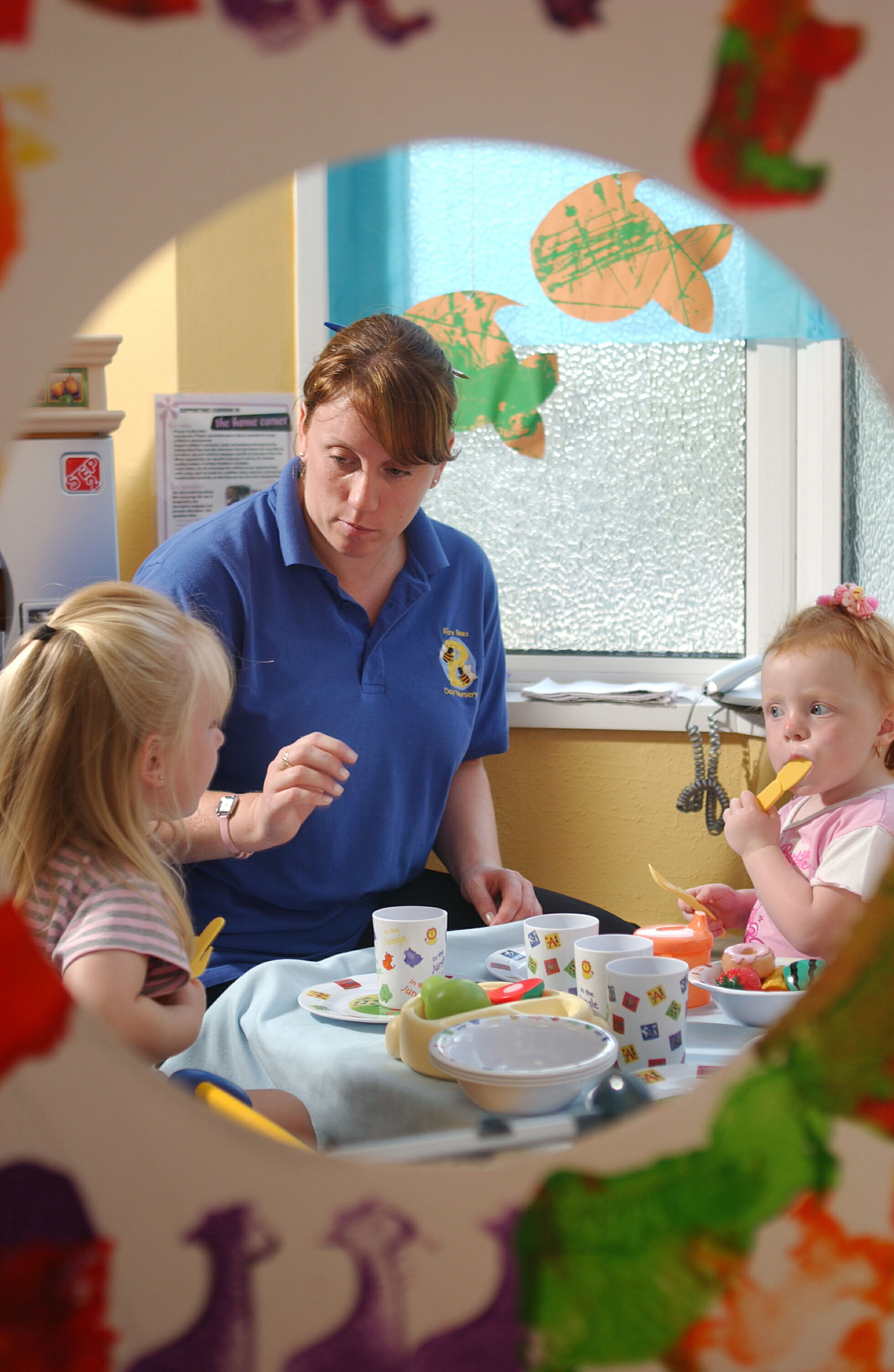 Mandatory Credit: ? Si Barber/07739 472 922 Nursery workers playing and interacting with toddlers.