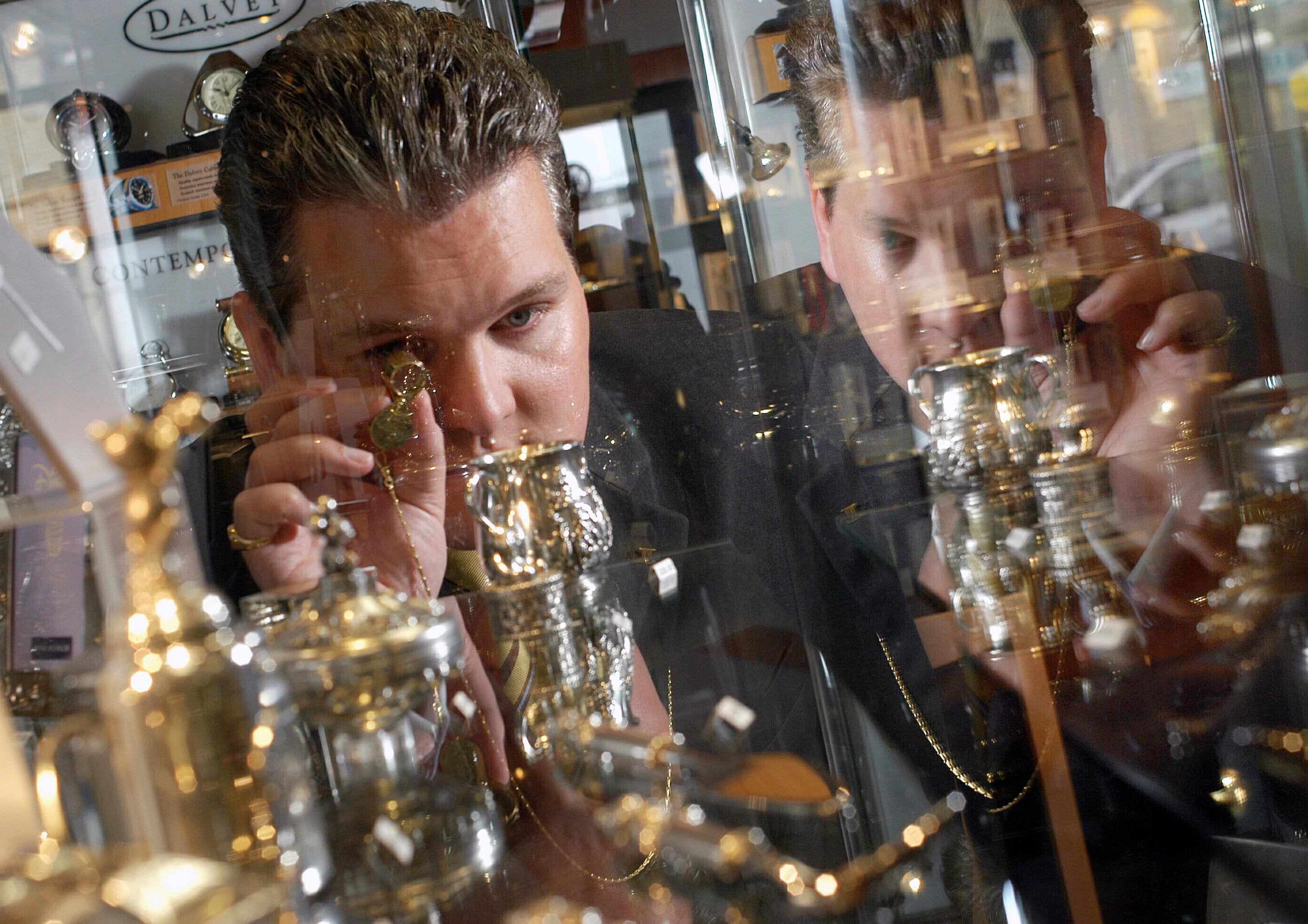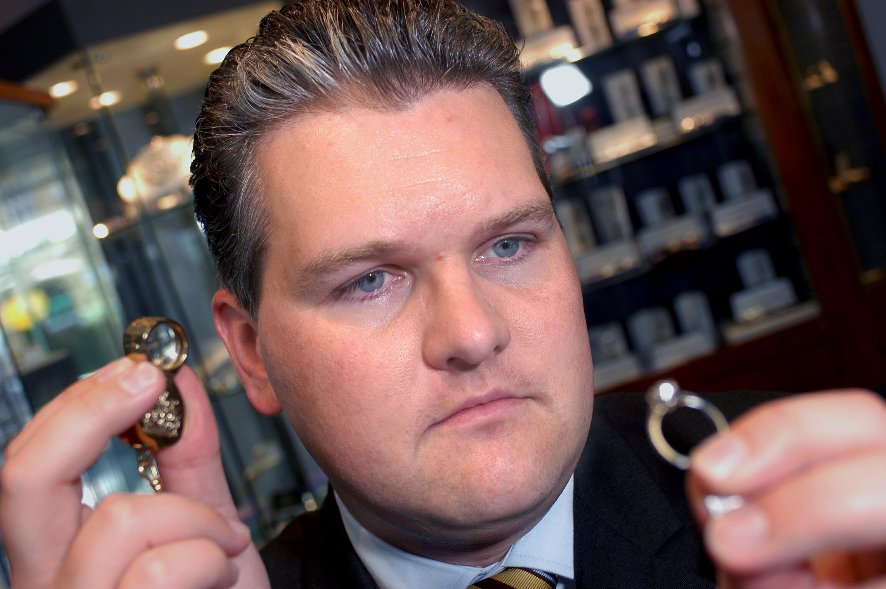 Pic by Si Barber - 07739 472 922 Jonathan Lambert, jeweller in his shop in Sudbury, Suffolk.