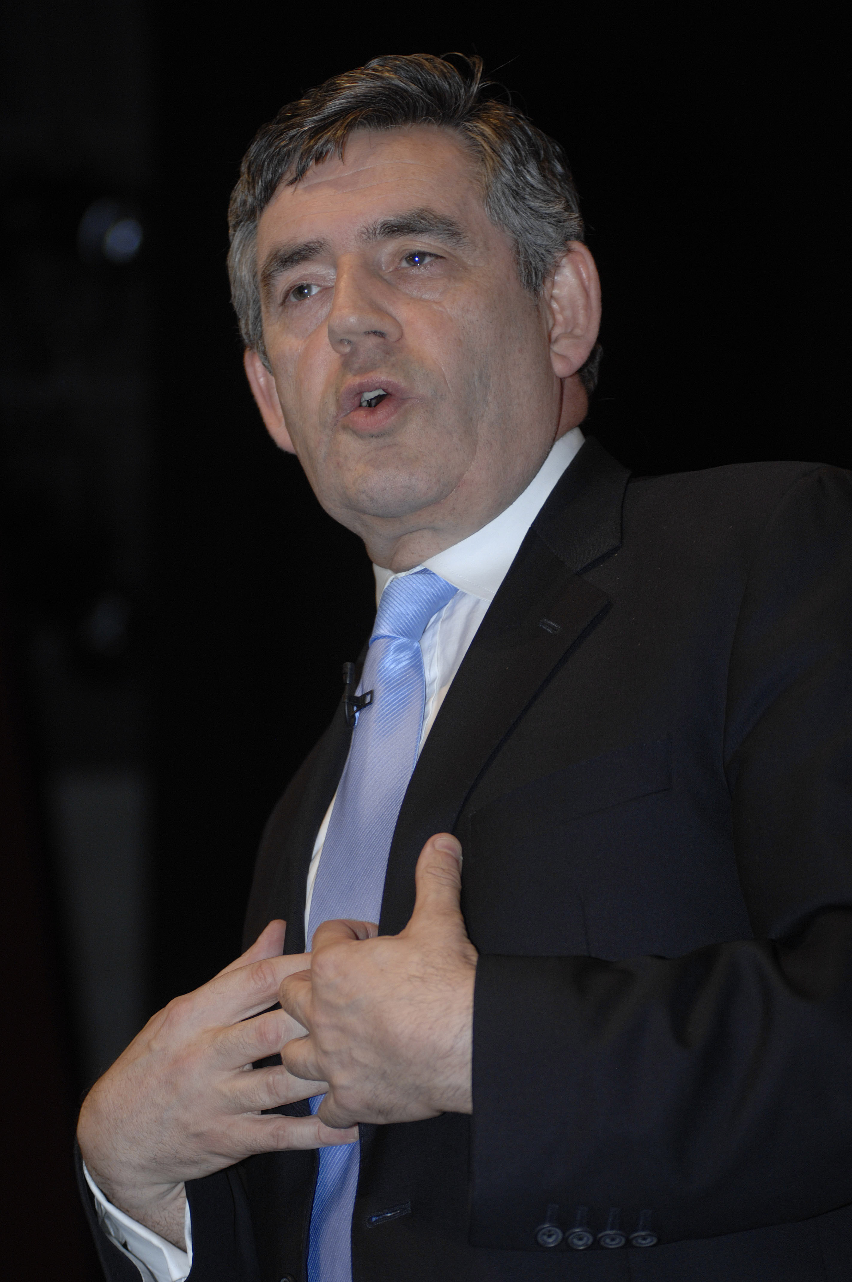Former Labour Prime MInister Gordon Brown speaking in Leicester